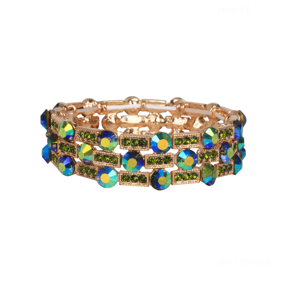 Stone Circle and Rectangle Metal Stretch Bracelet