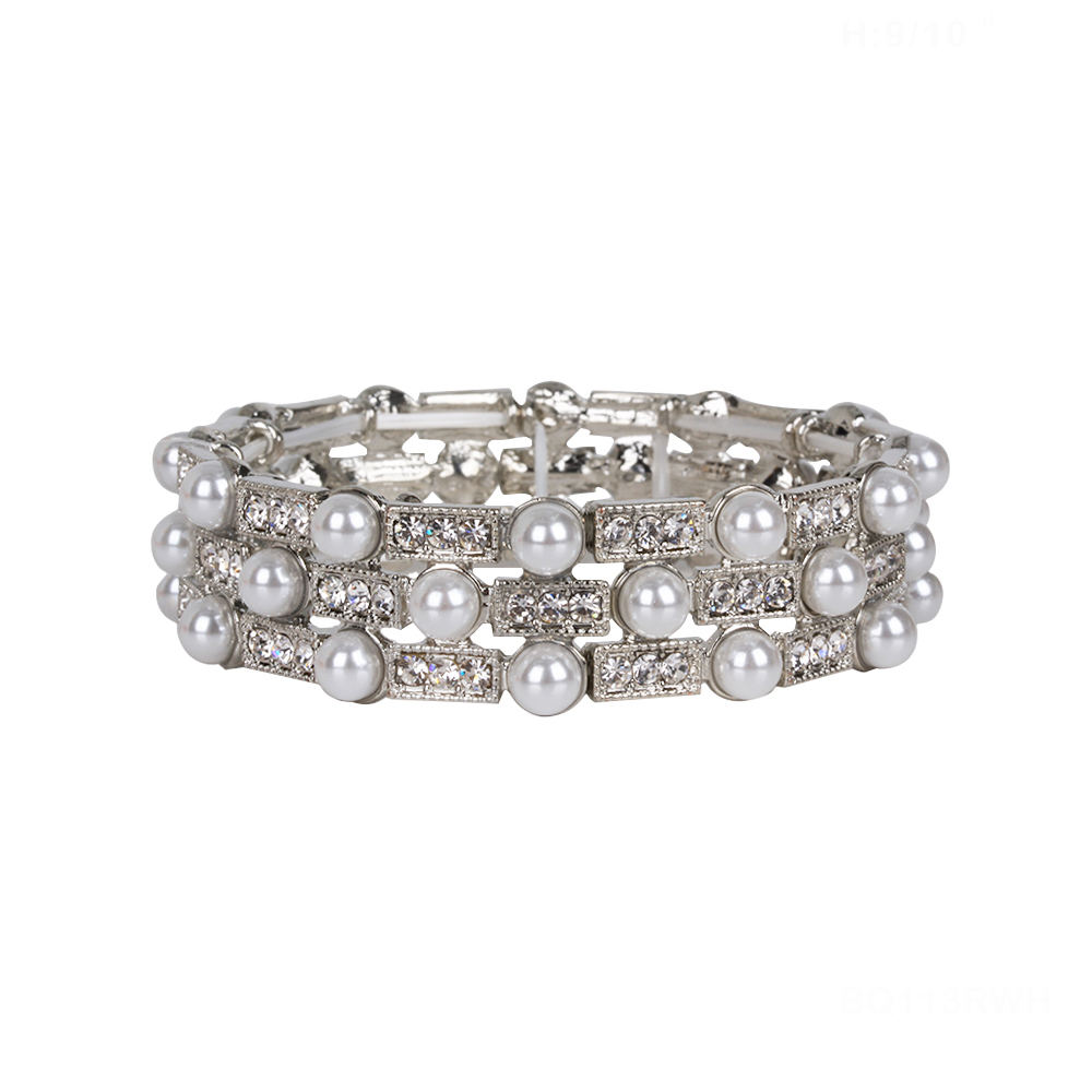Pearls and Stone Rectangle with Metal Stretch Bracelet