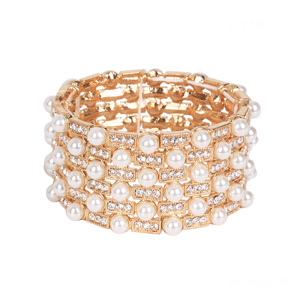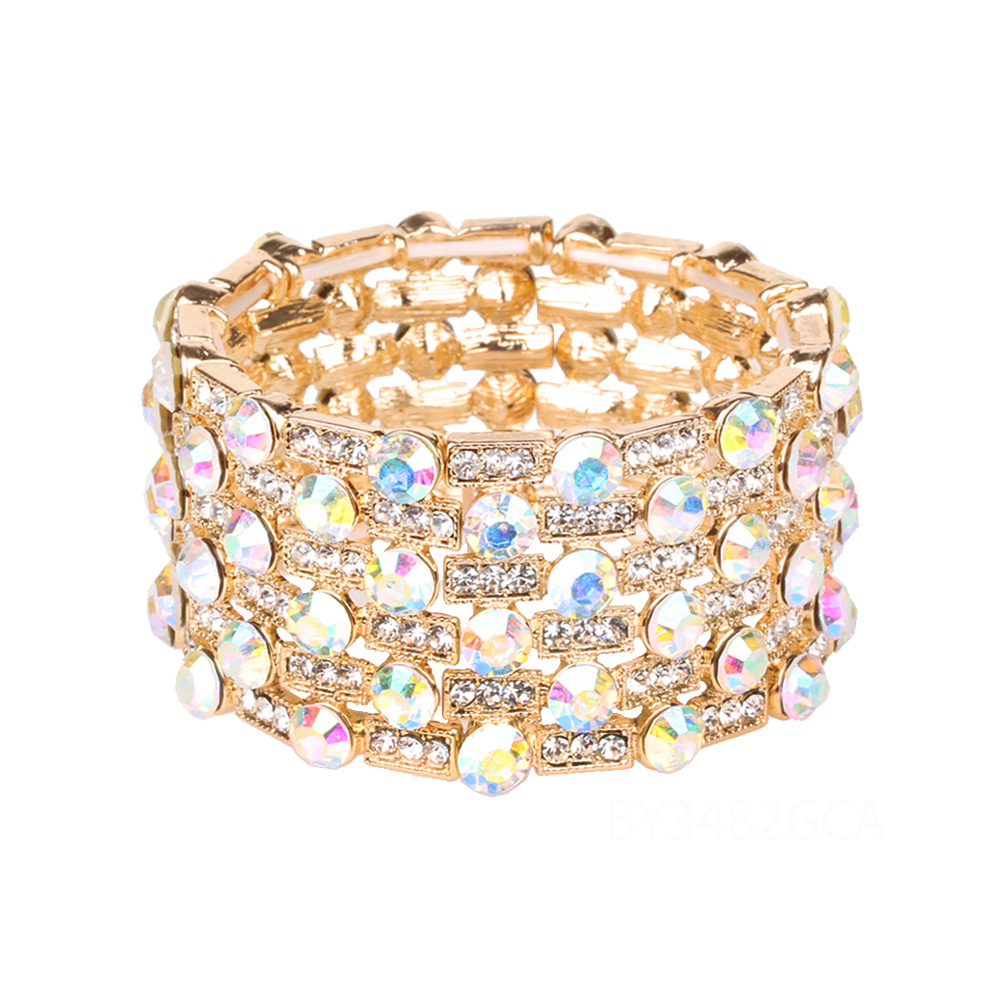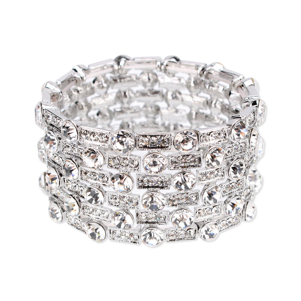 6 Line Wide Stone Encrusted Stretch Bracelet