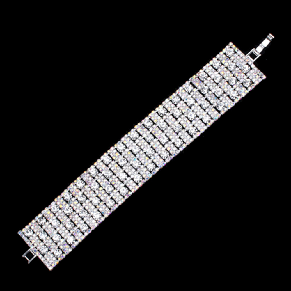 By3548Sac Wide Dressy Rhinestone Clasp Bracelet