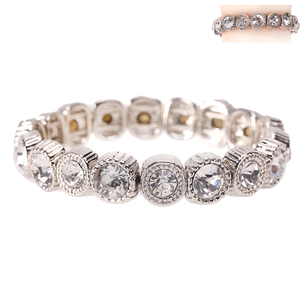 SINGLE RHINESTONE STRETCH BRACELET W/GEMS