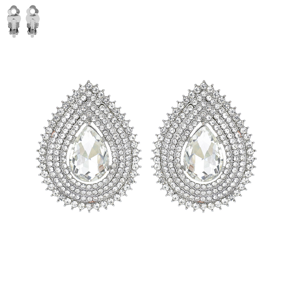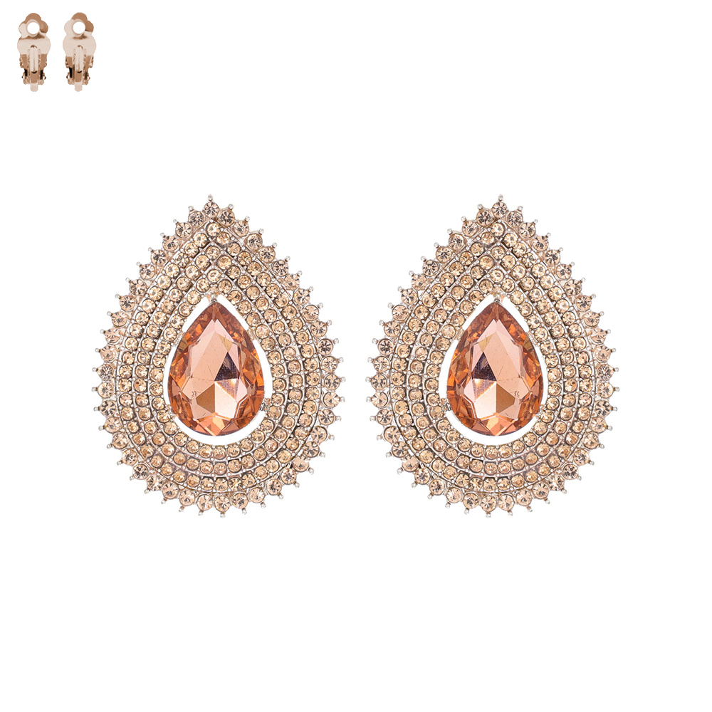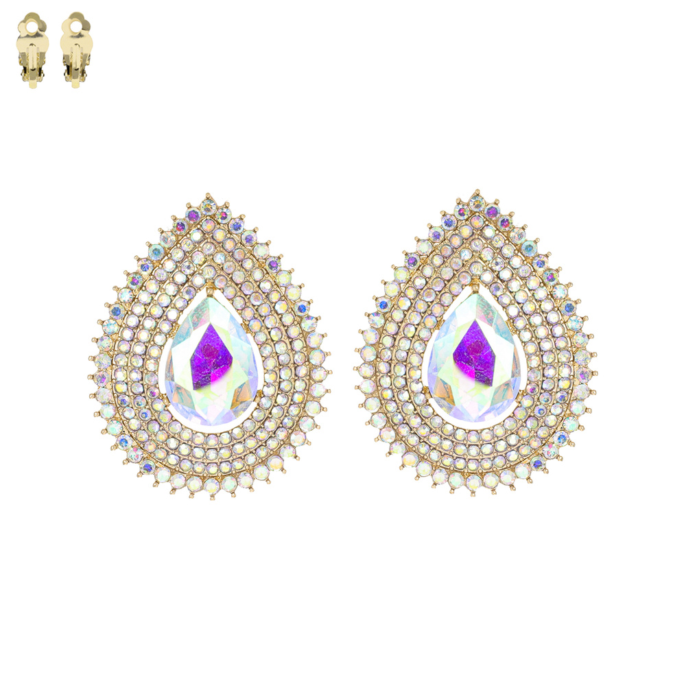 Teardrop Gem With Stones Clip Earrings Ecq21Rcl