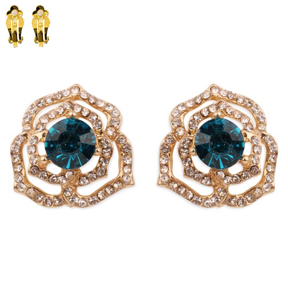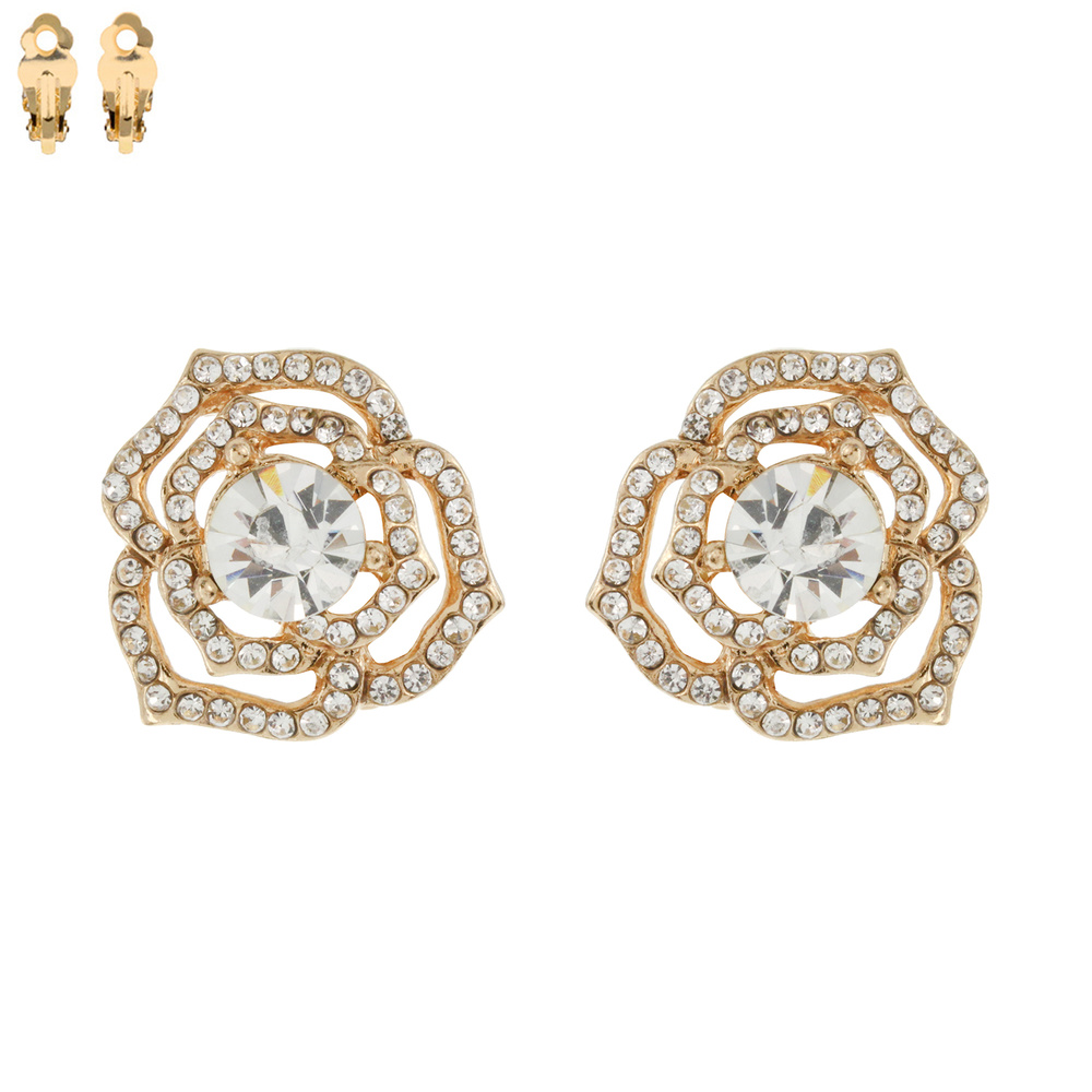 FLORAL CRYSTAL RHINESTONE CLIP-ON EARRINGS