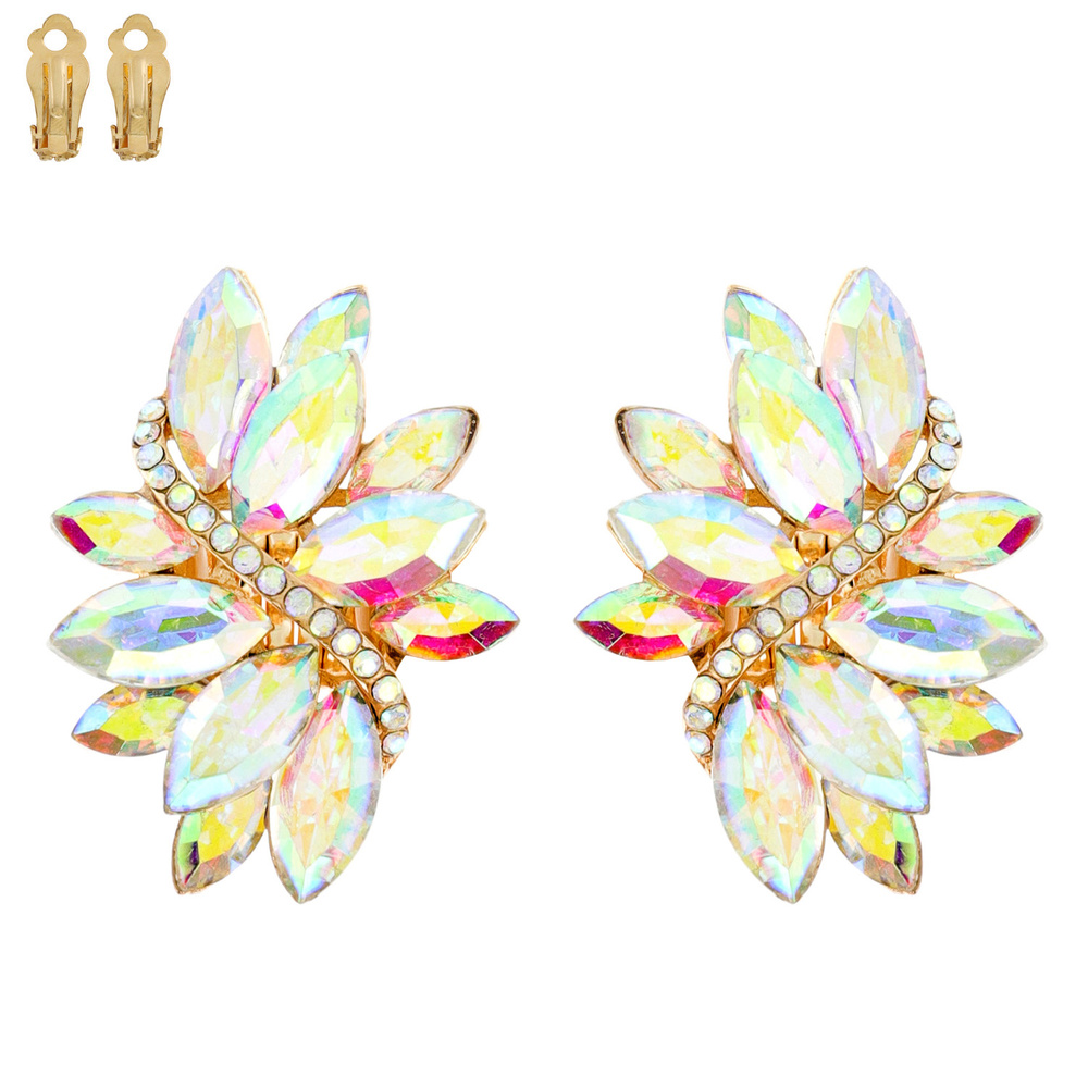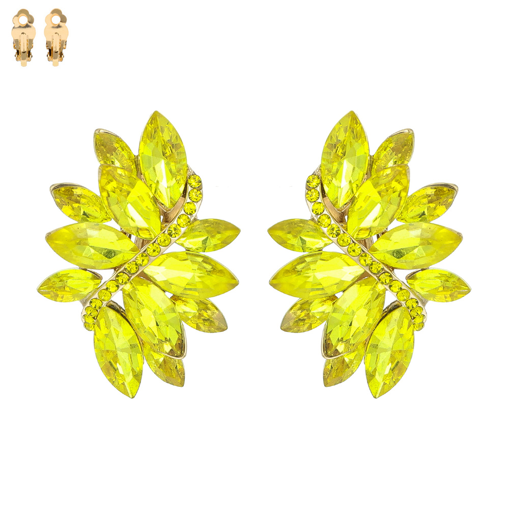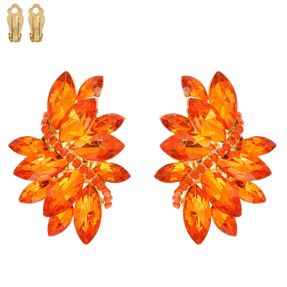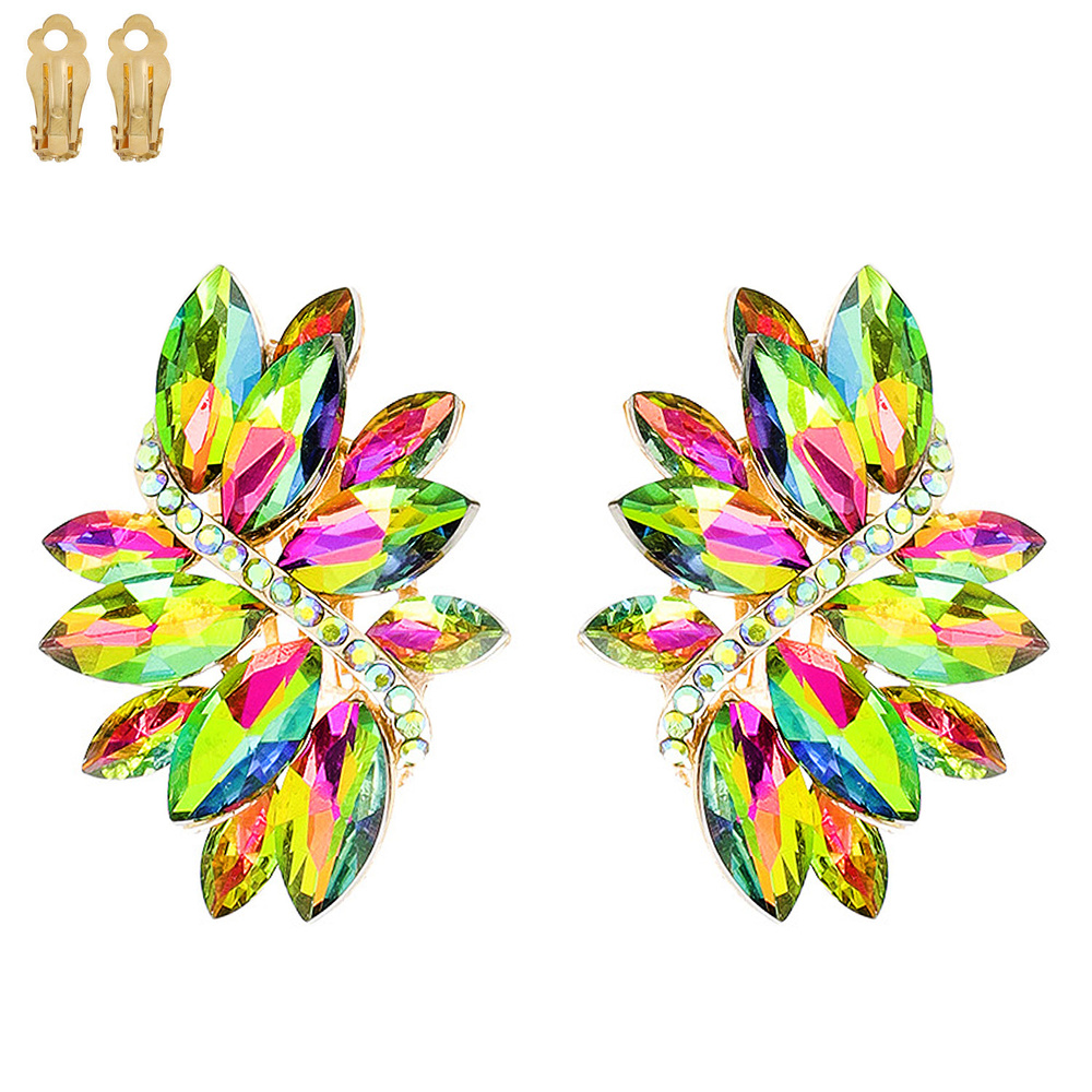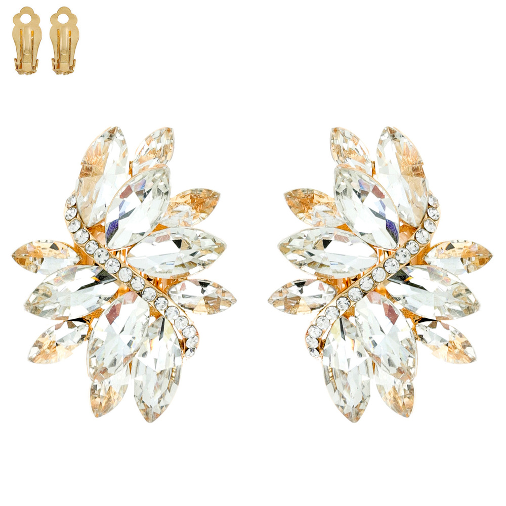 MARQUISE GEM LEAF CLUSTER METAL CLIP EARRINGS
