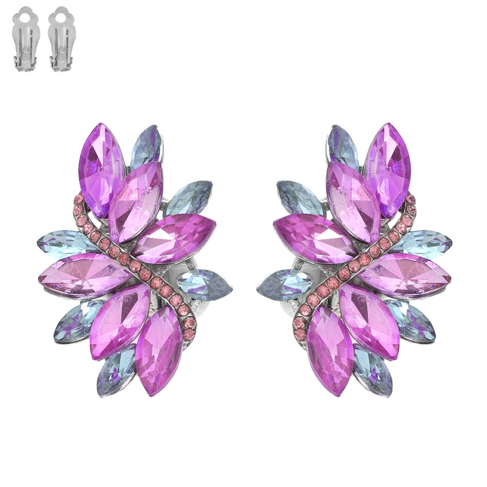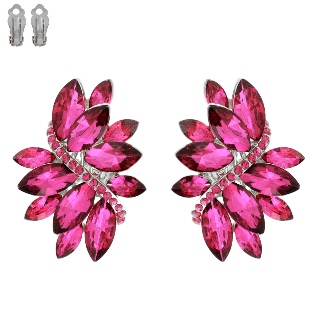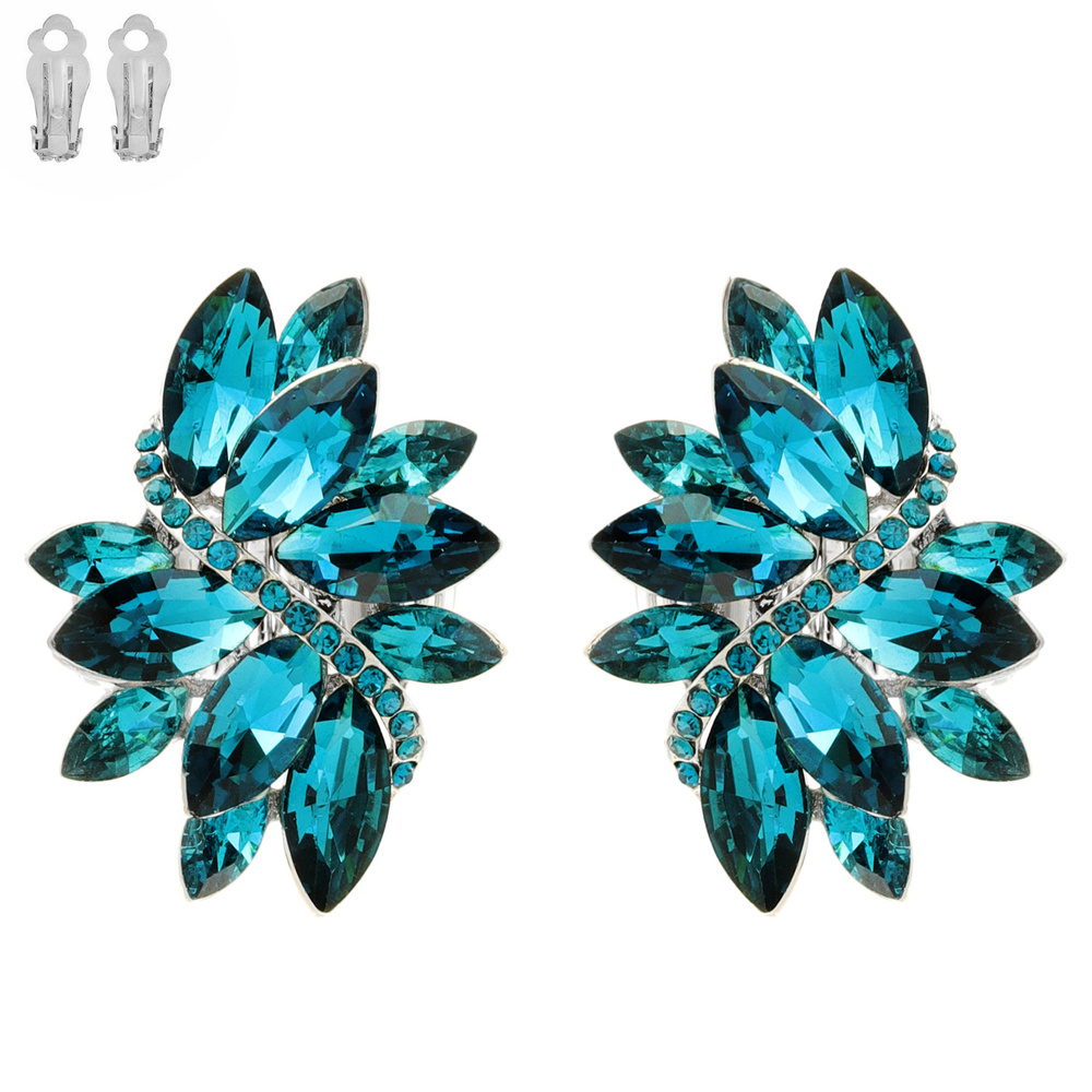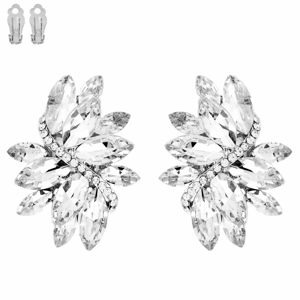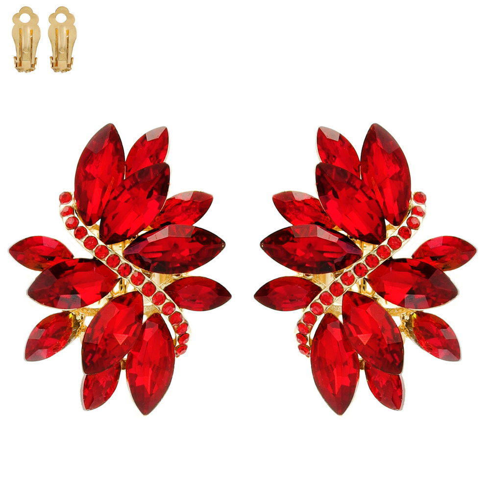 MARQUISE GEM LEAF CLUSTER METAL CLIP EARRINGS