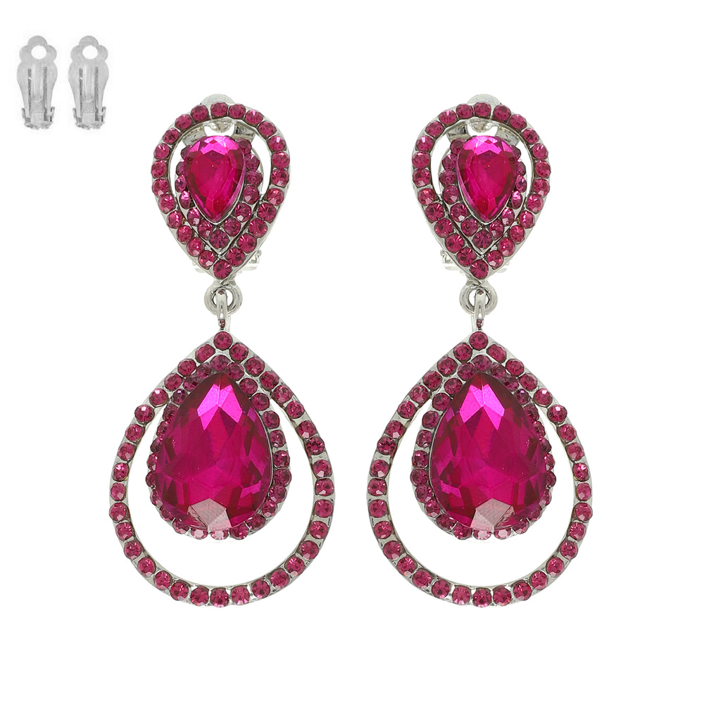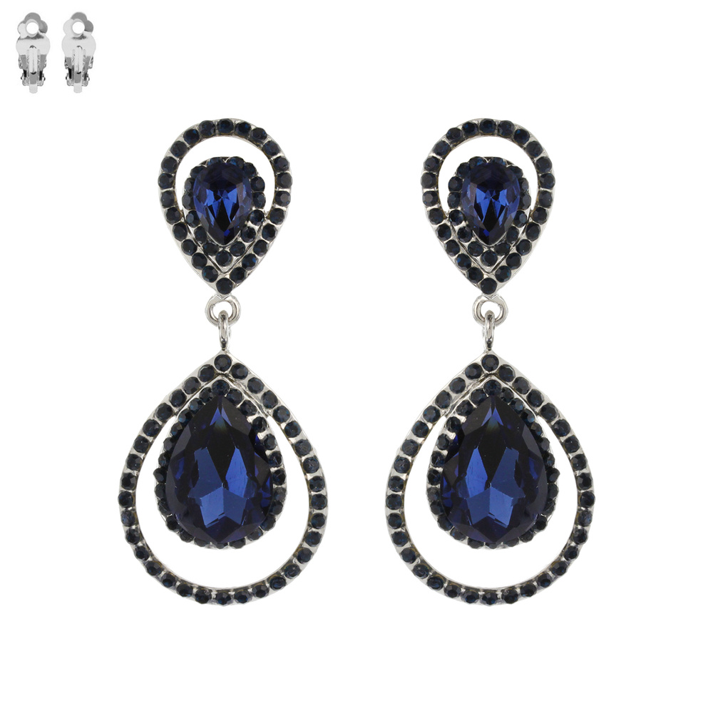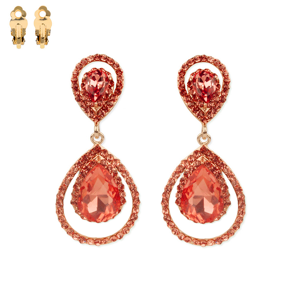 Dangly Teardrop Gem Metal Clip EARRINGS