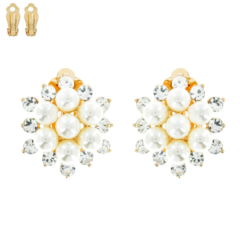 Pearl Cluster with Stones Stone Clip EARRINGS