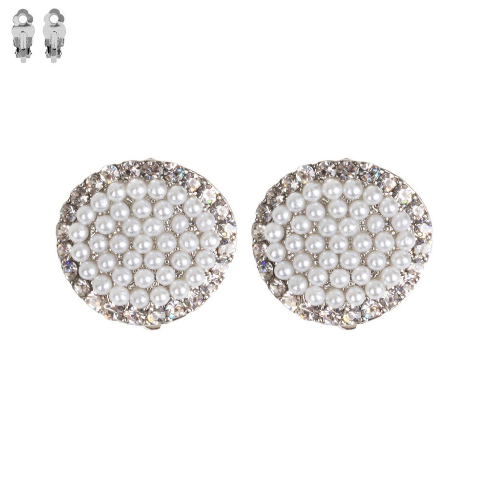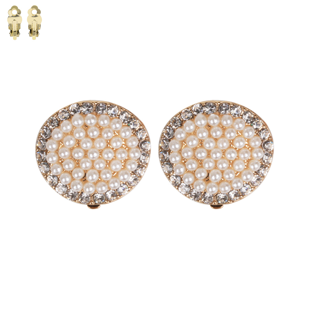 CIRCLE PEARL STONE CLIP EARRING