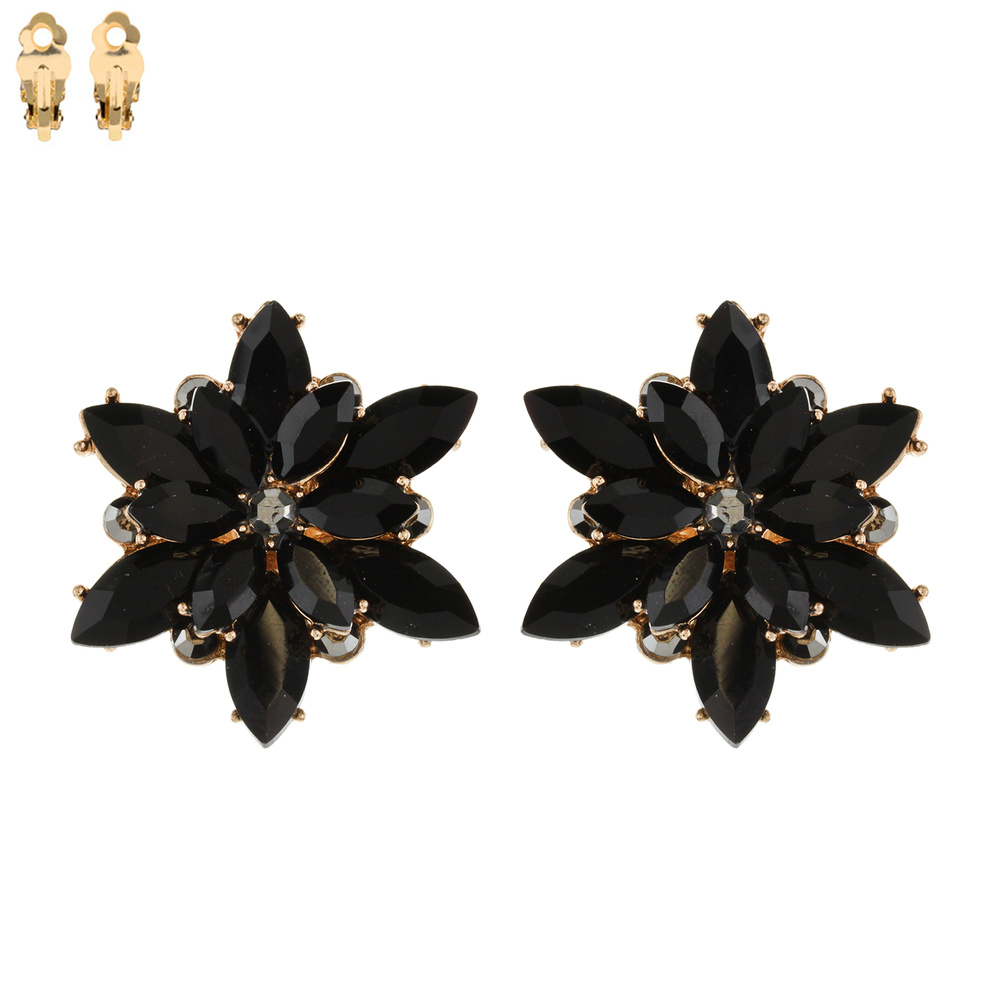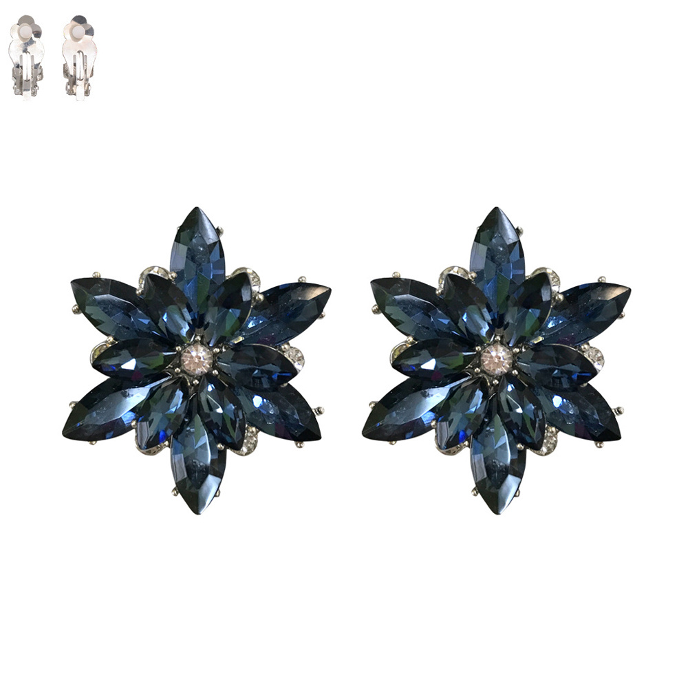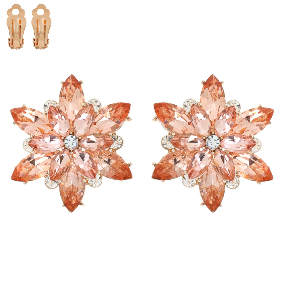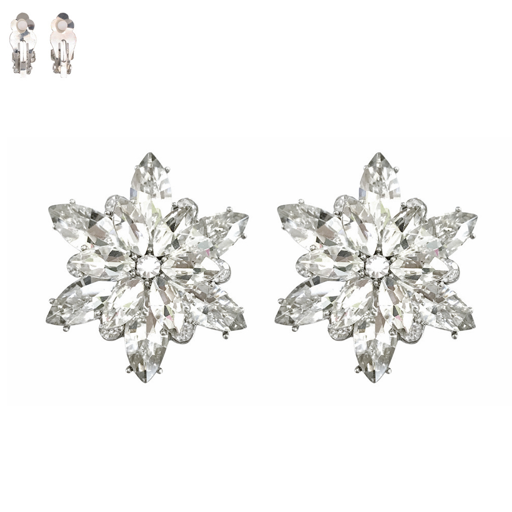 GEMSTONE FLOWER SNOWFLAKE EVENING CLIP ON EARRINGS
