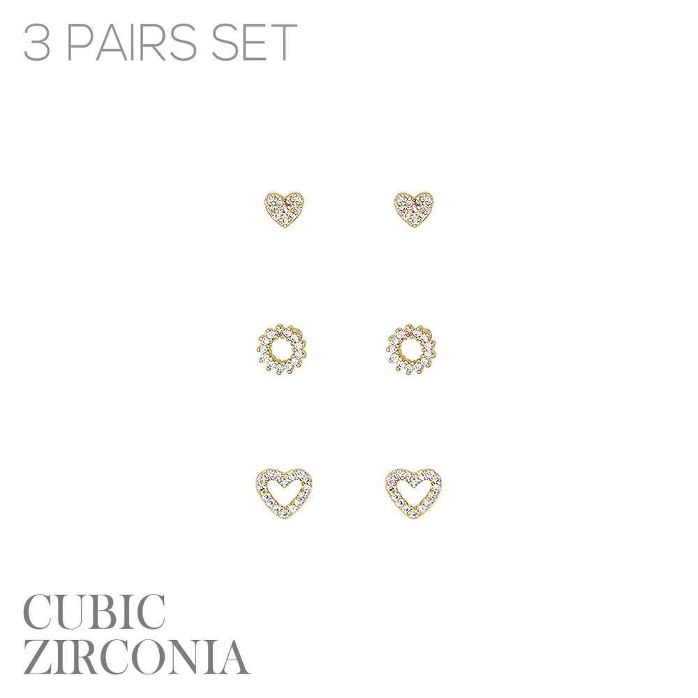 3 PAIRS CUBIC ZIRCONIA EARRINGS