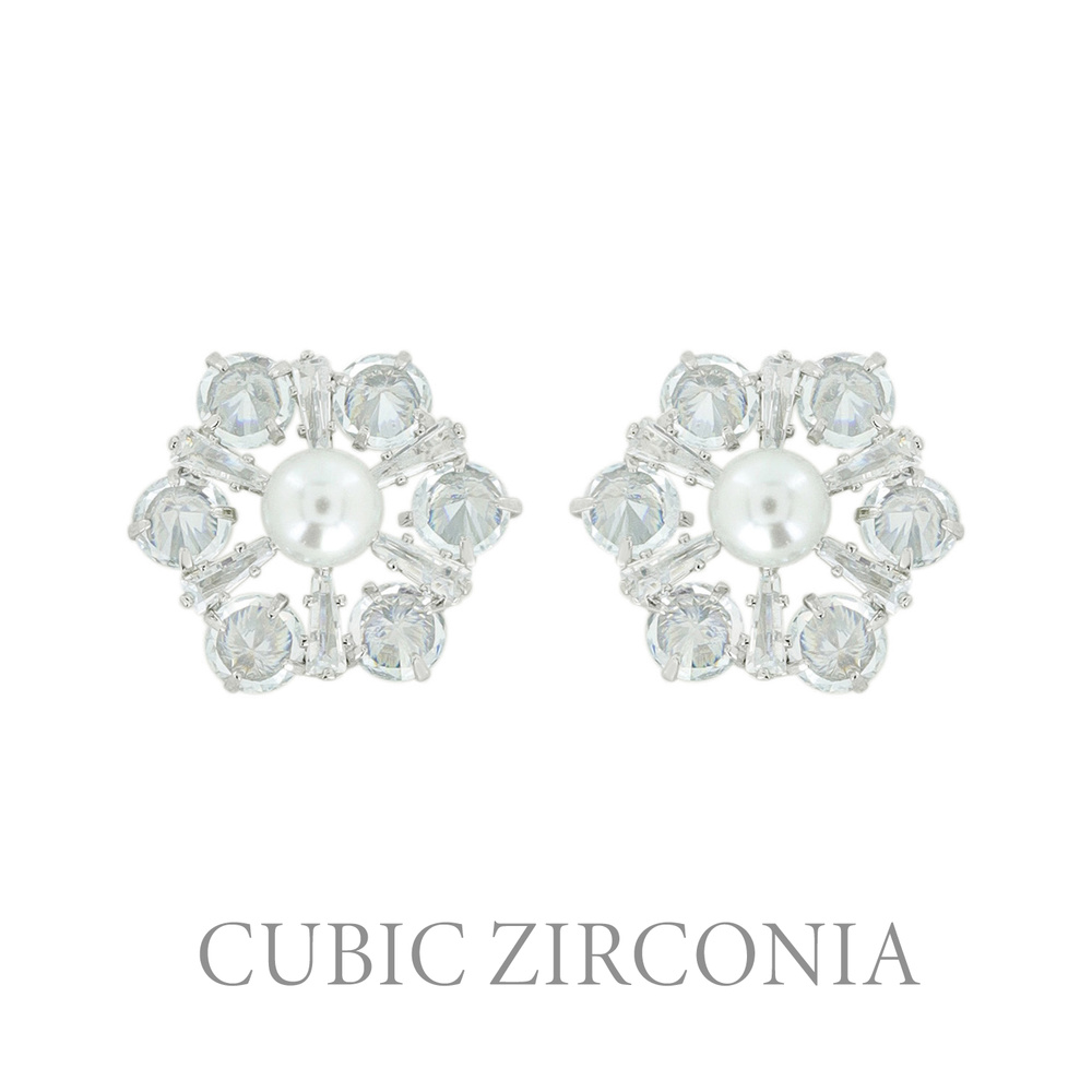 CZ CUBIC ZIRCONIA FLOWER STUD EARRINGS