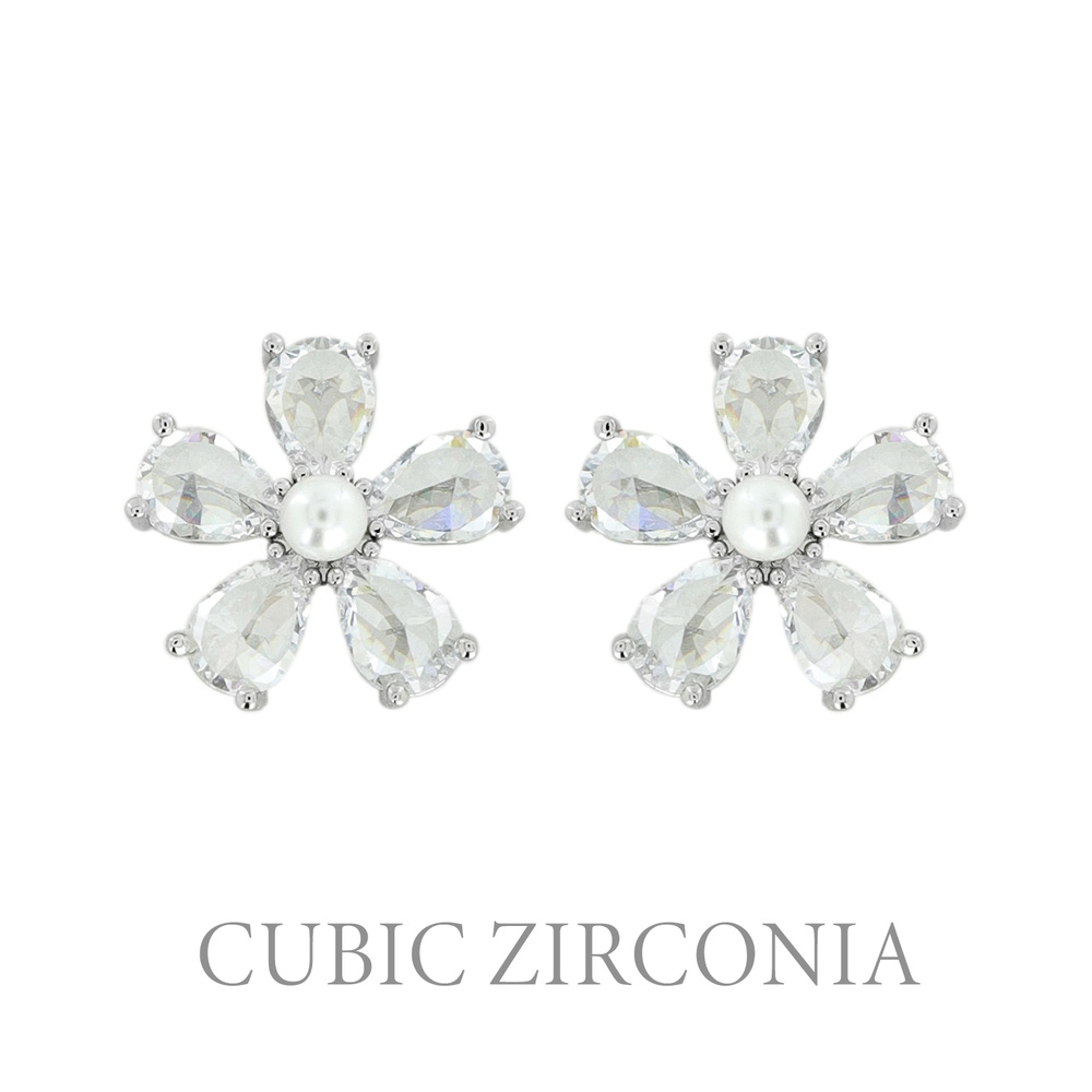 PEARL AND CZ CUBIC ZIRCONIA FLOWER STUD EARRINGS