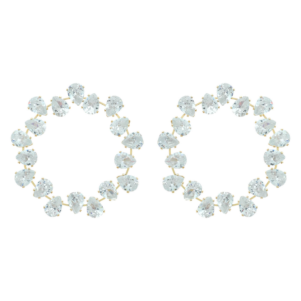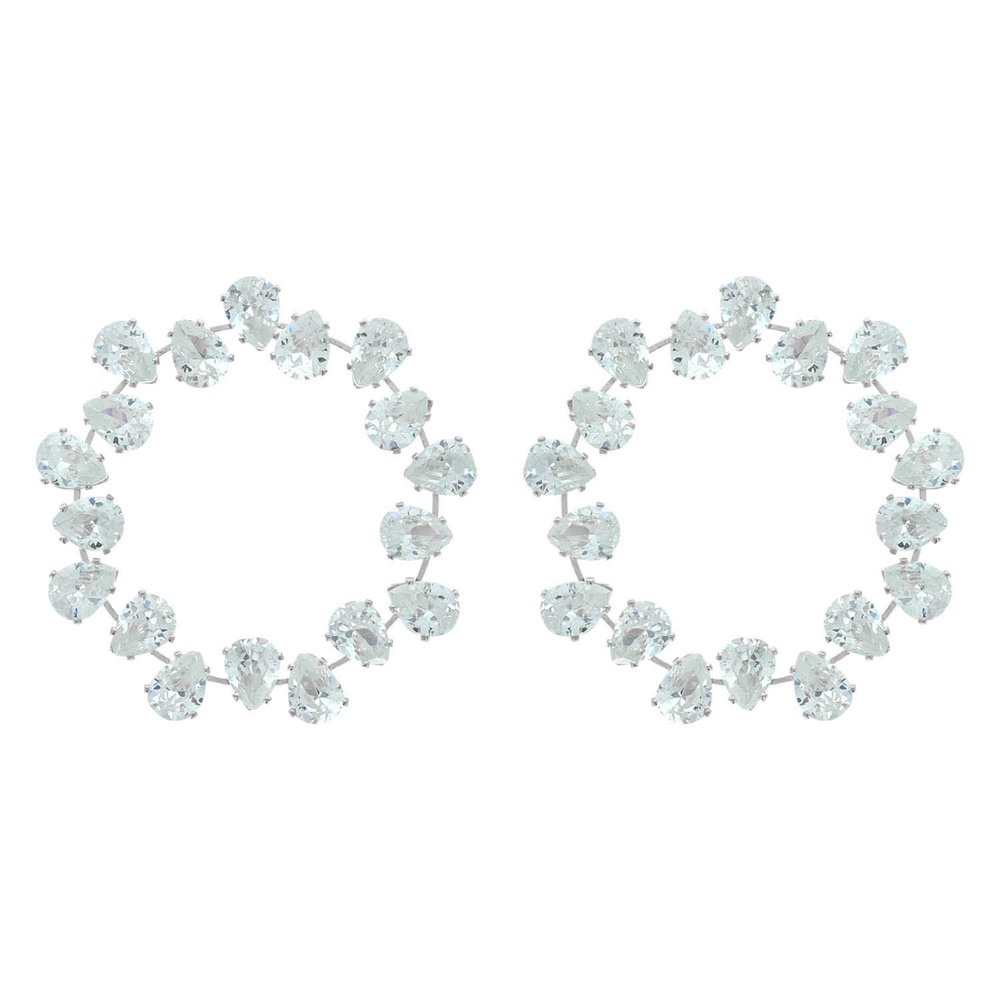 TEARDROP CRYSTAL CZ CUBIC ZIRCONIA CIRCULAR DROP EARRINGS IN SILVER AND GOLD TONE
