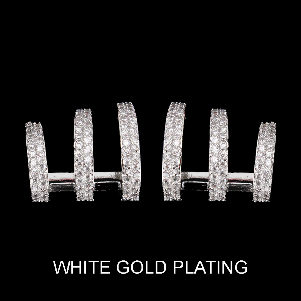 3 CZ Stripe Bars Stud Earrings with White Gold Plating