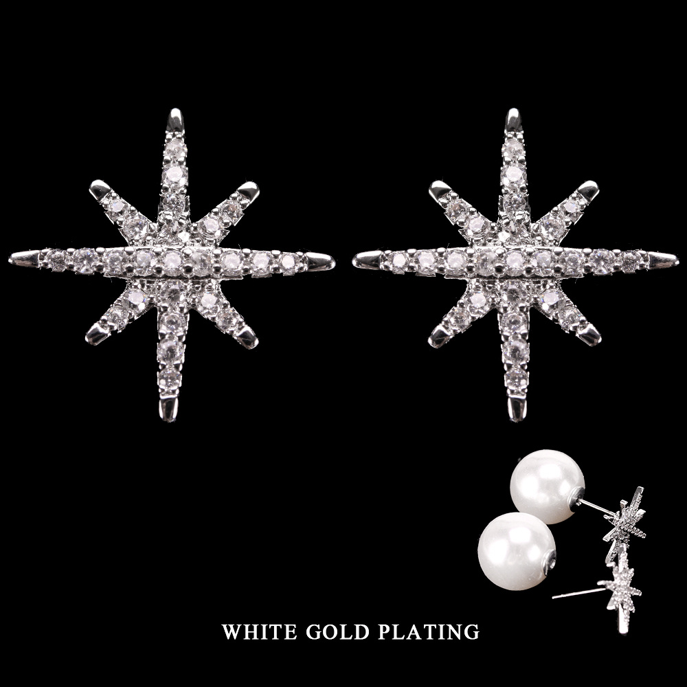 CZ CUBIC ZIRCONIA STAR W/PEARL BACK STUD EARRINGS