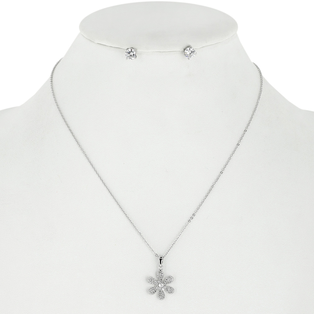 CZ CUBIC ZIRCONIA FLOWER PENDANT NECKLACE AND EARRINGS