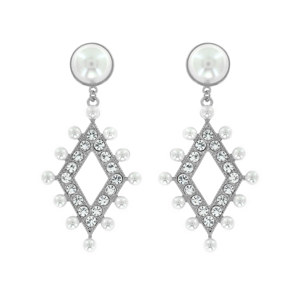 FASHION PEARL AND RHINESTONE DIAMOND SHAPE DANGLE EARRINGS