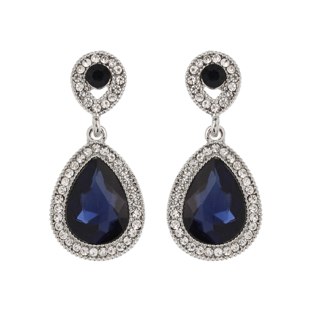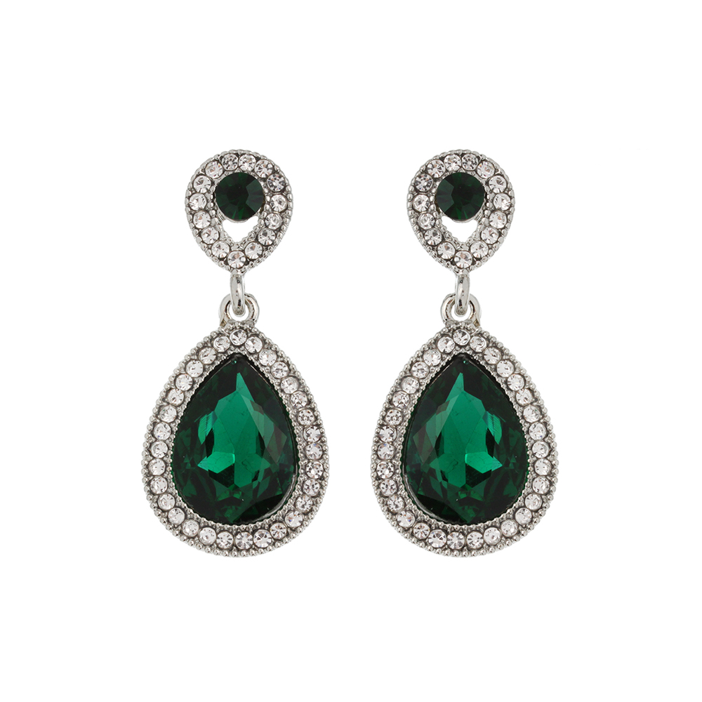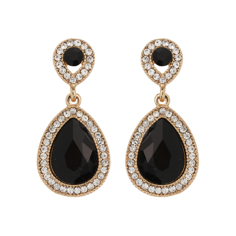 Dangly Teardrop Gem with Stone Edge Earrings