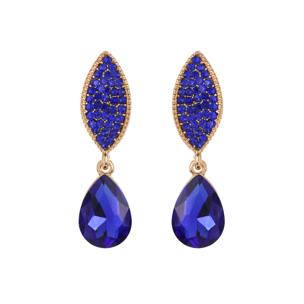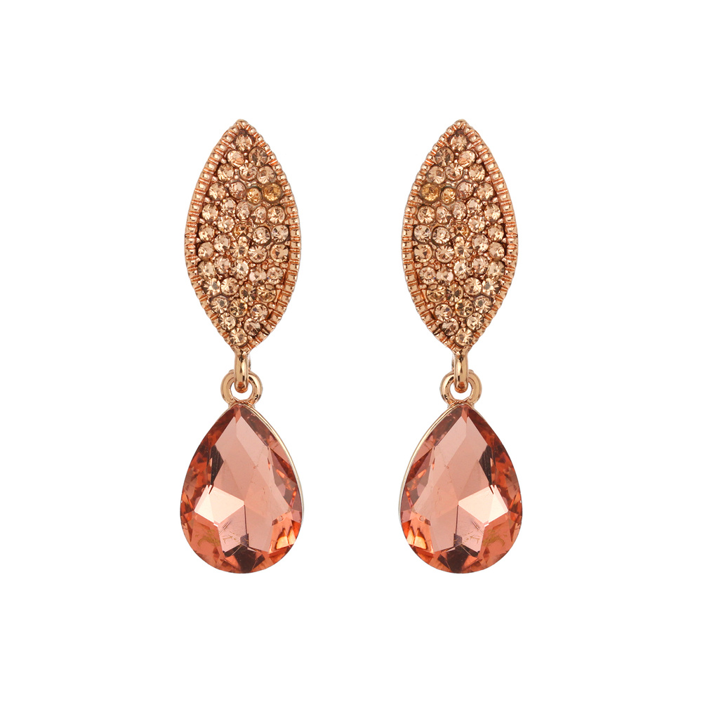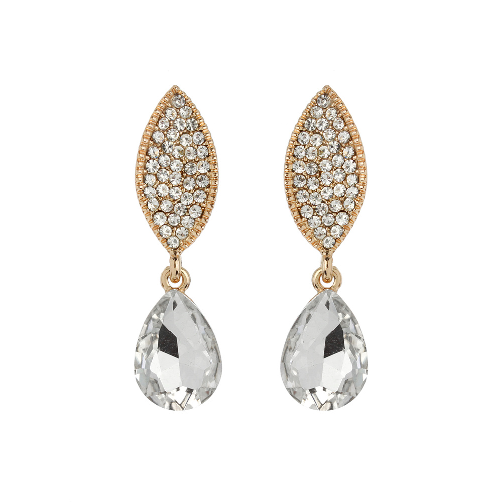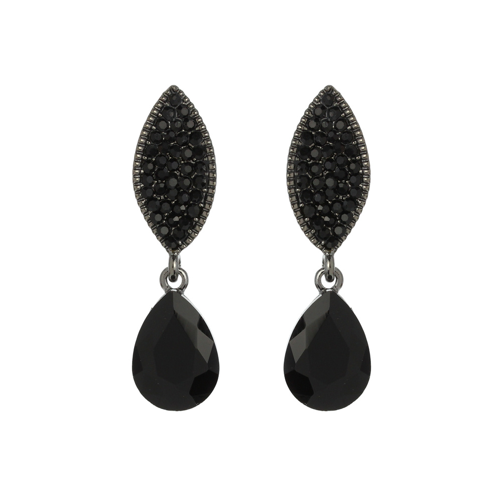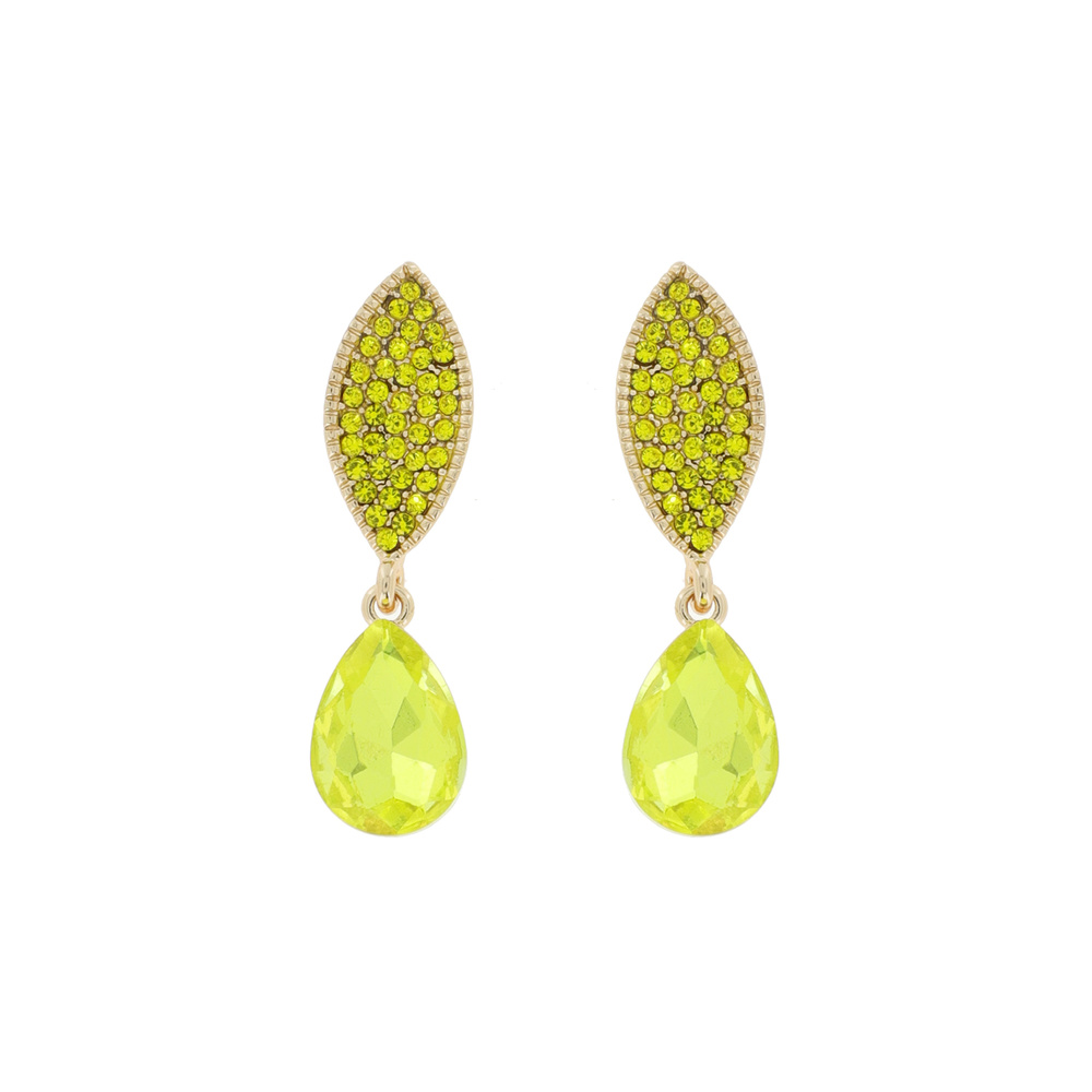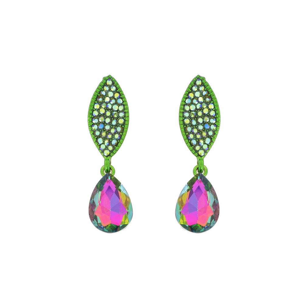 Stone Encrusted Leaf with Dangly Teardrop Gem Earrings