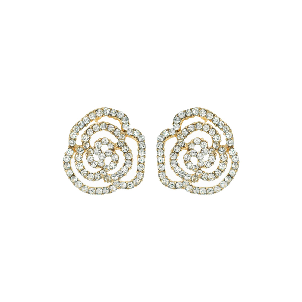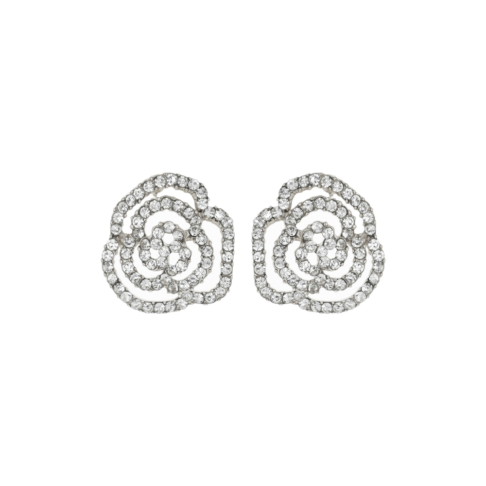 CRYSTAL RHINESTONE PAVE ROSE STUD EARRINGS