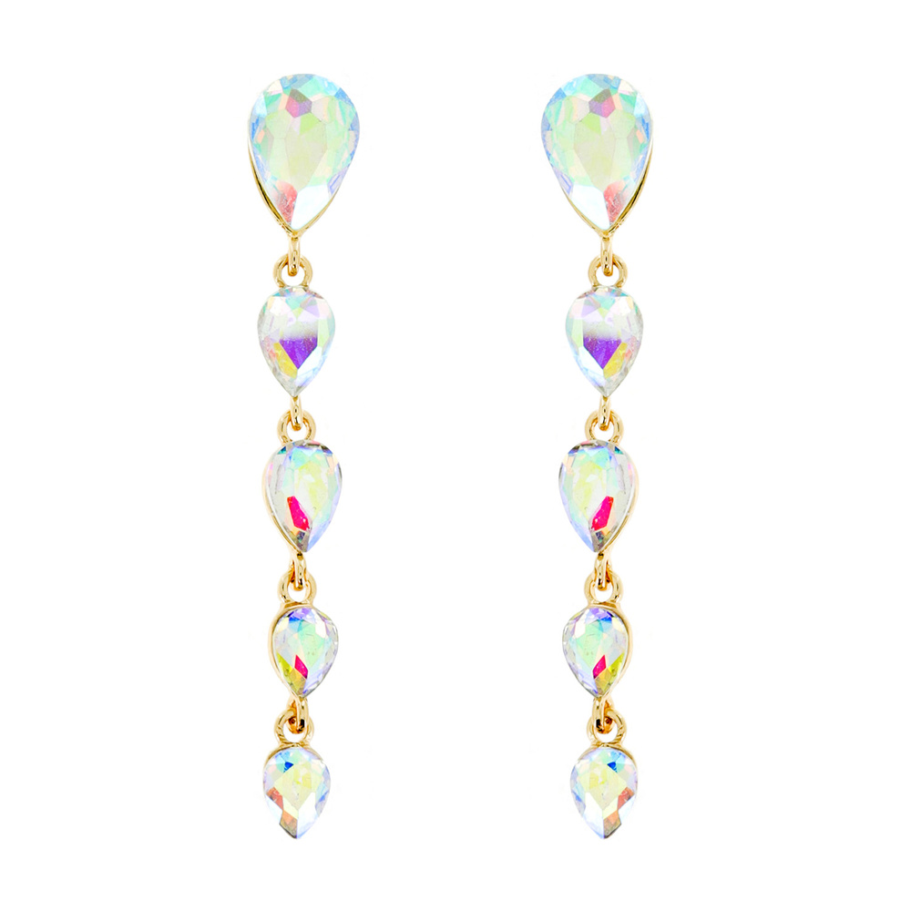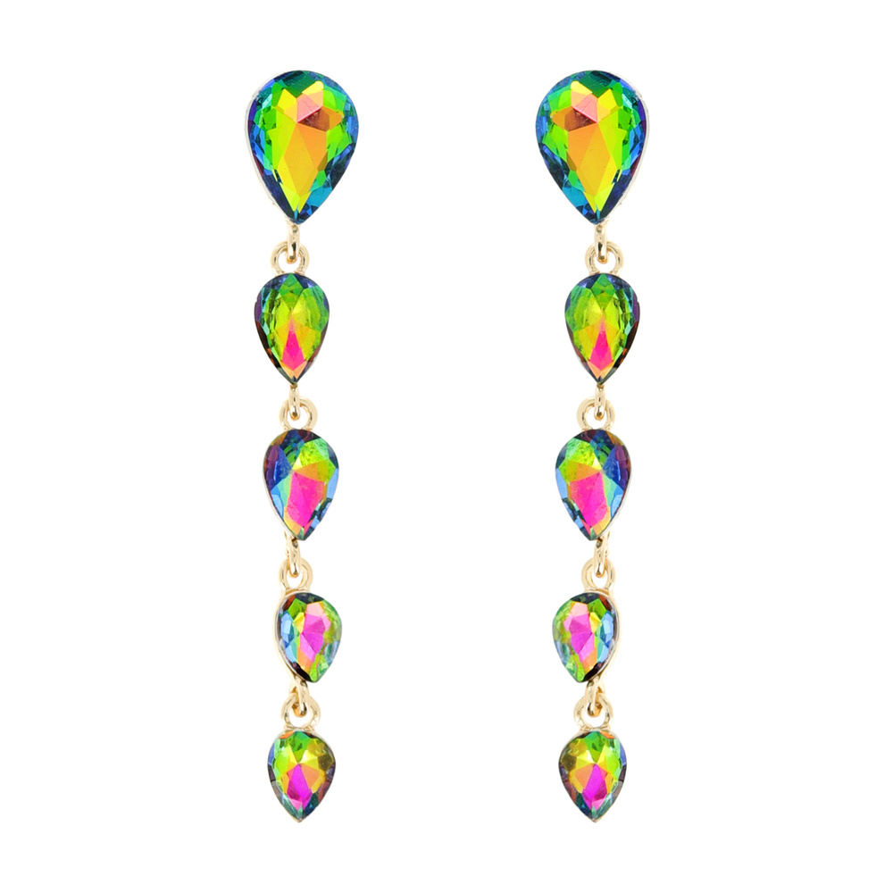 5-TIER TEARDROPCRYSTAL GEMSTONE DROP EARRINGS