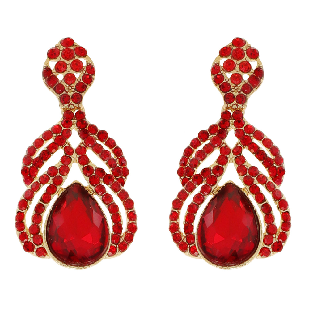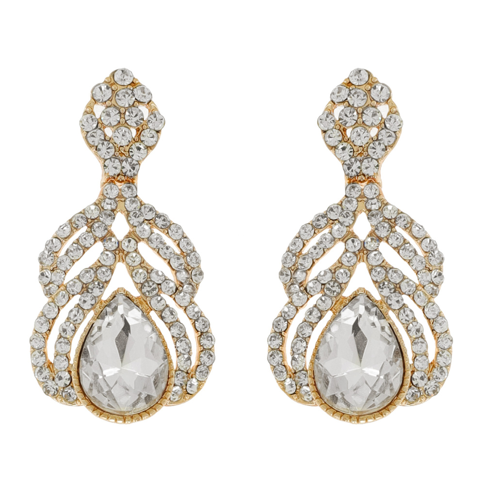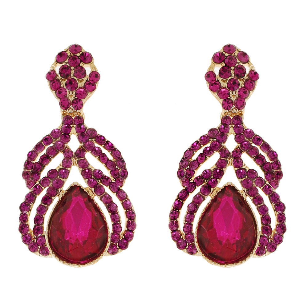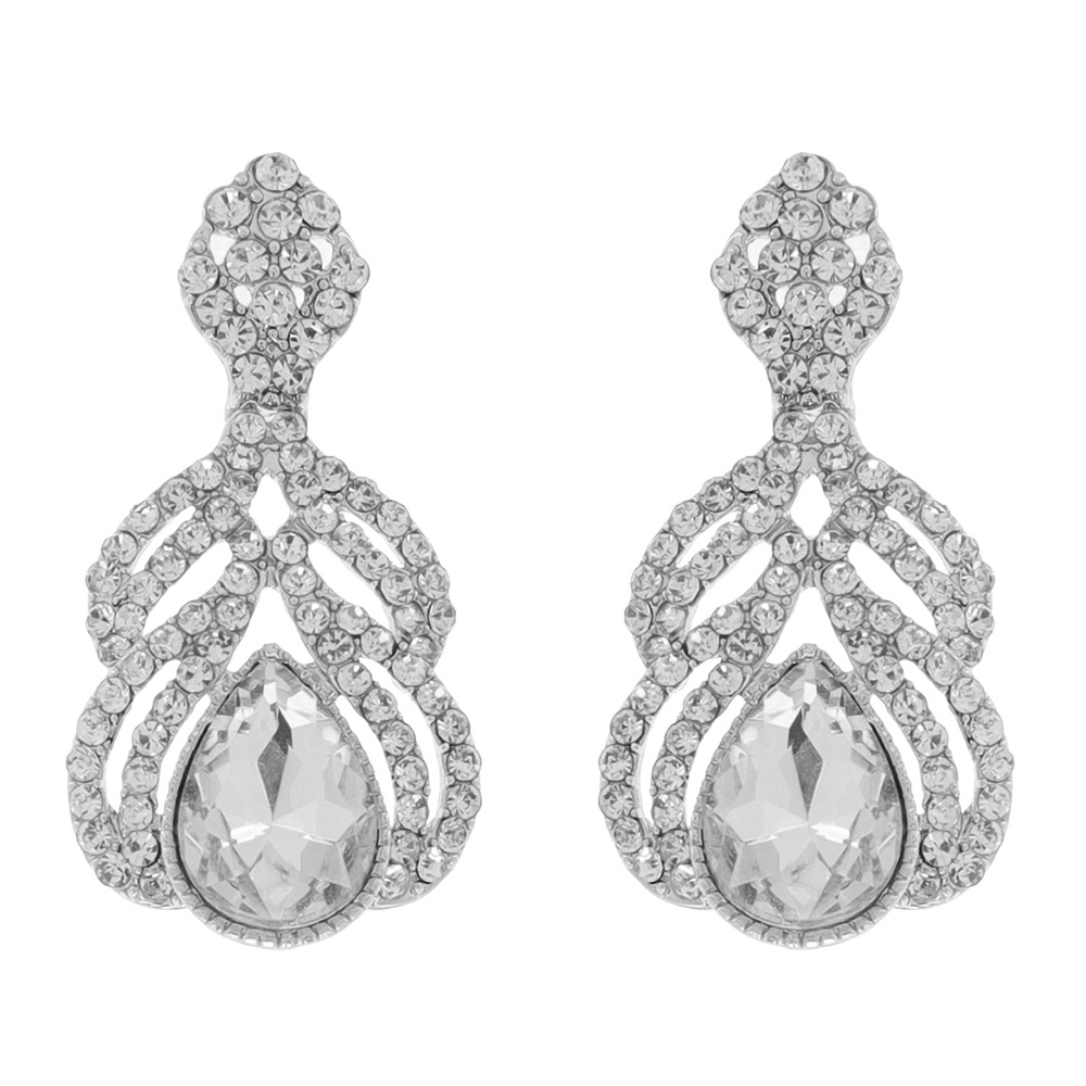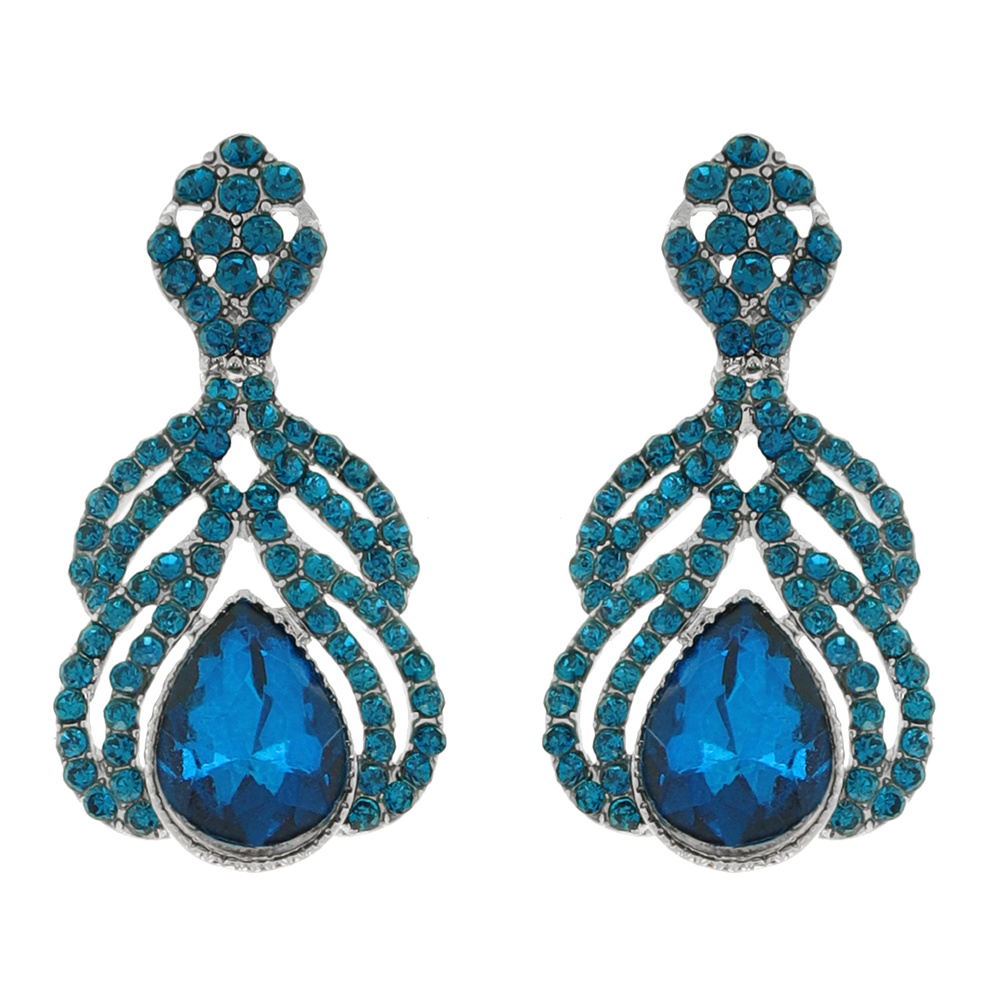 CRYSTAL RHINESTONE PEACOCK FEATHER SHAPED DANGLE AND DROP EARRINGS