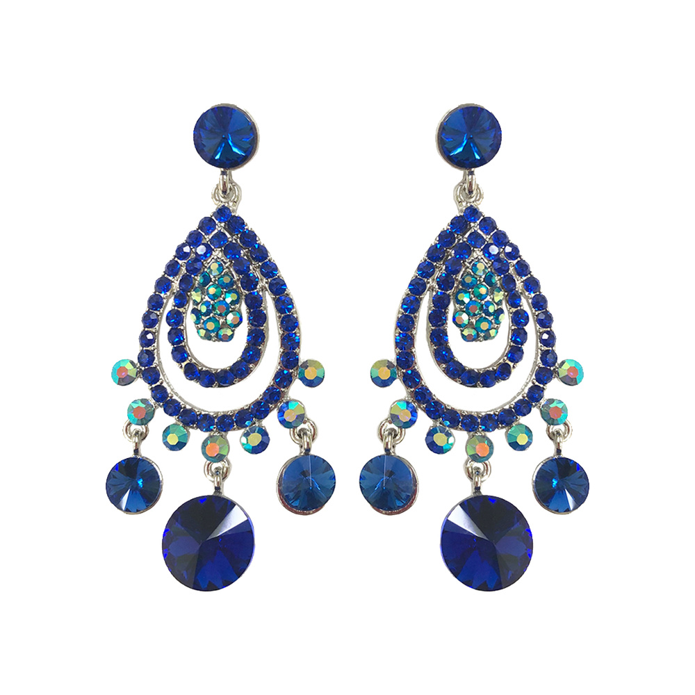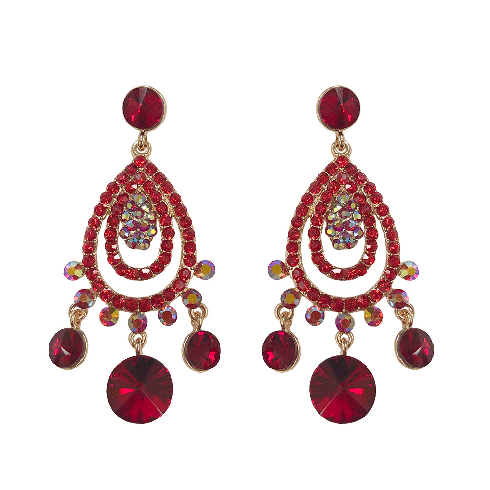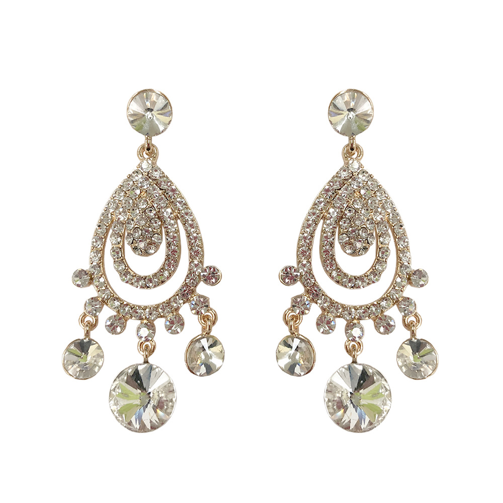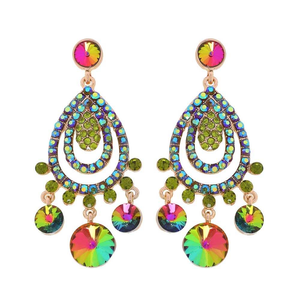 METAL STONE TEARDROP CHANDELIER EARRING