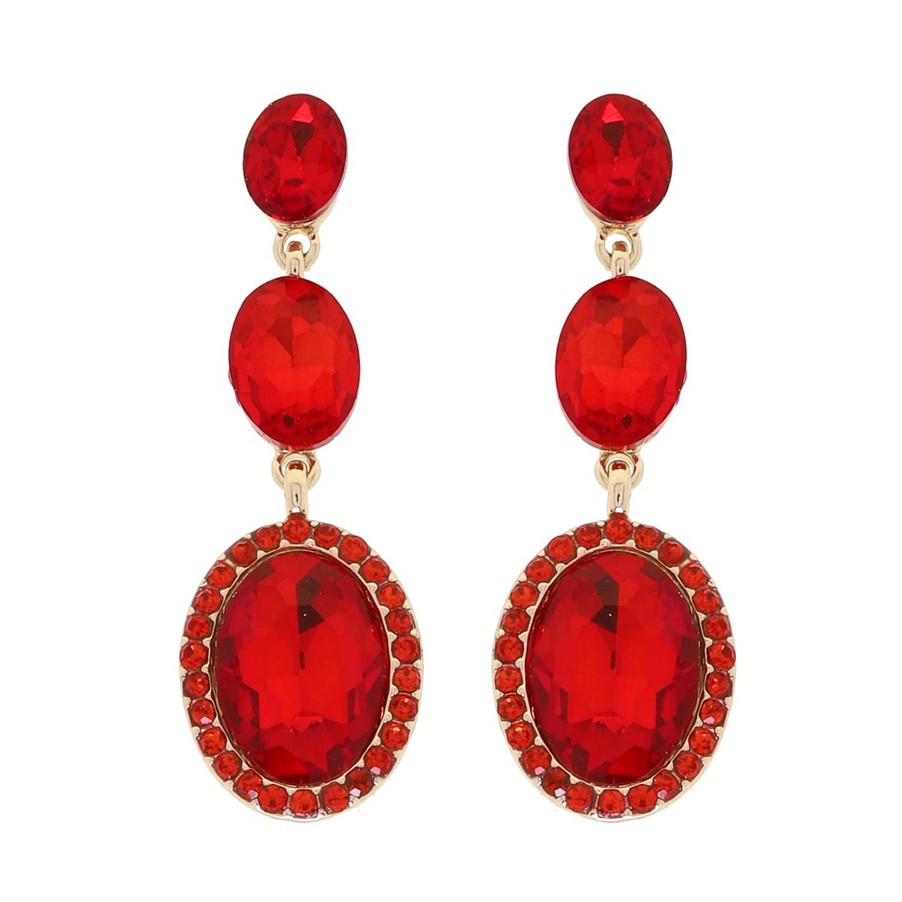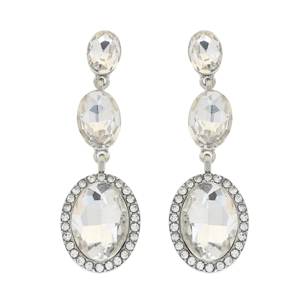 3-TIER CRYSTAL RHINESTONE OVAL CUT HALO LONG DROP EARRINGS