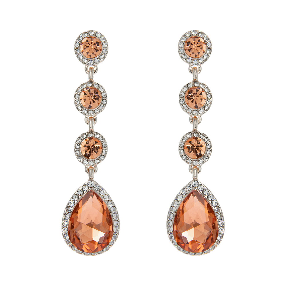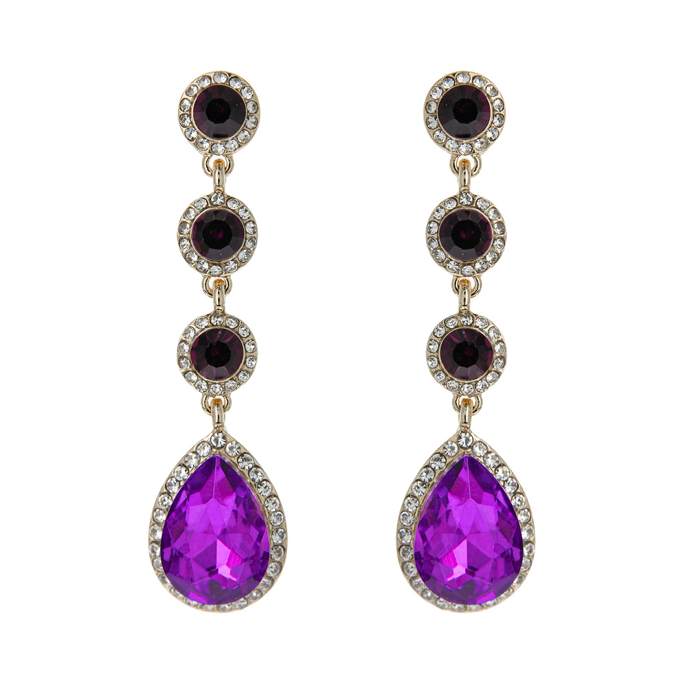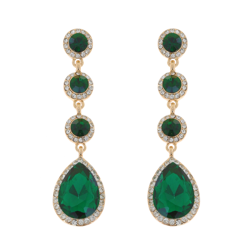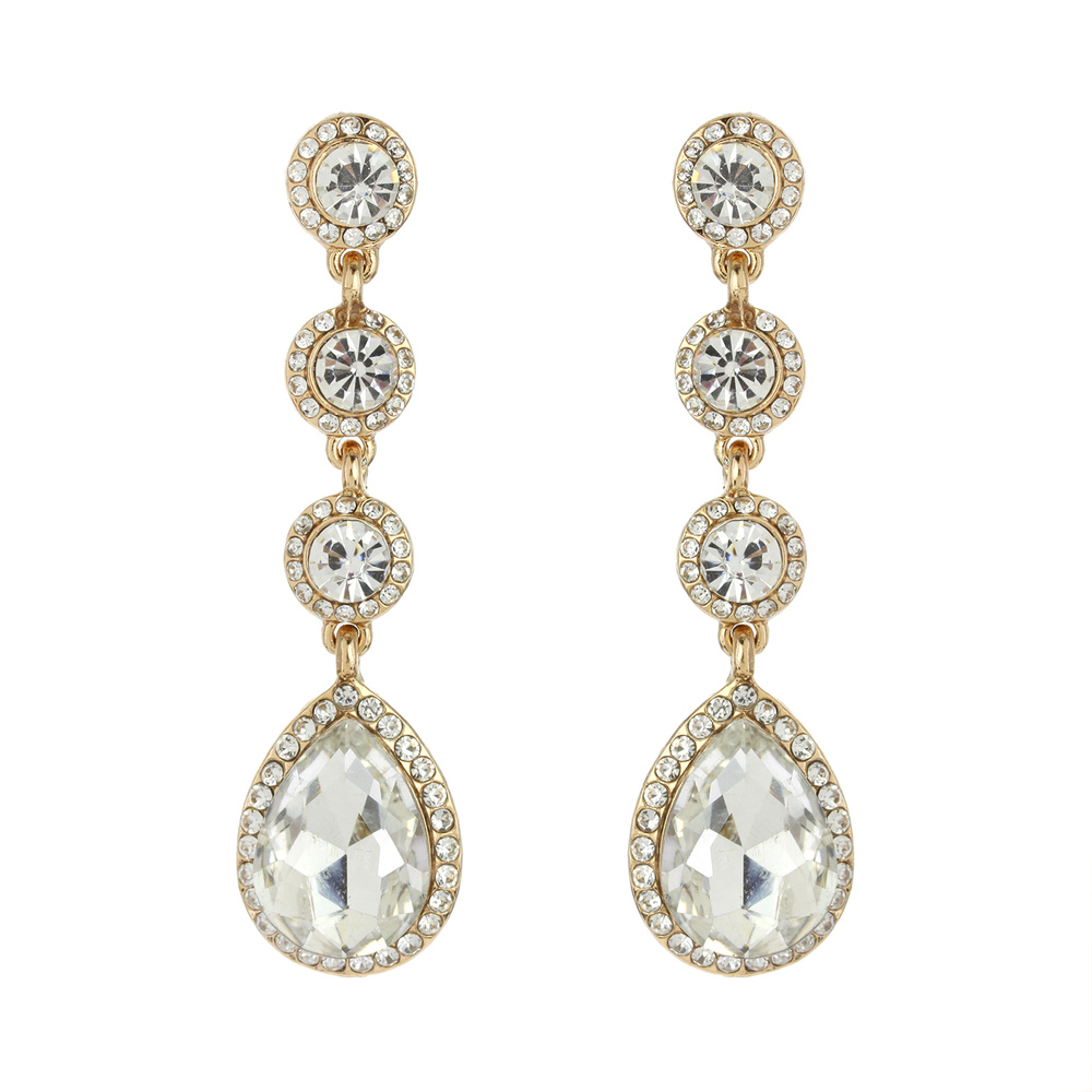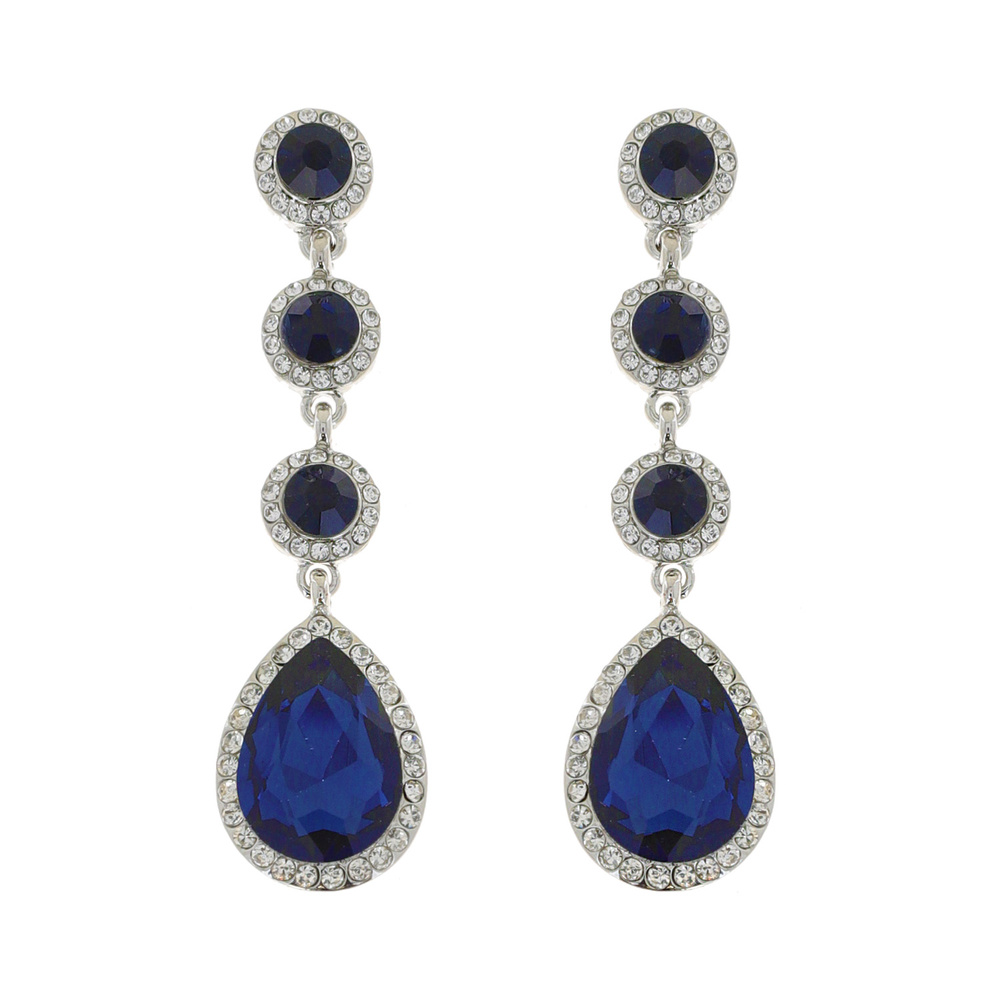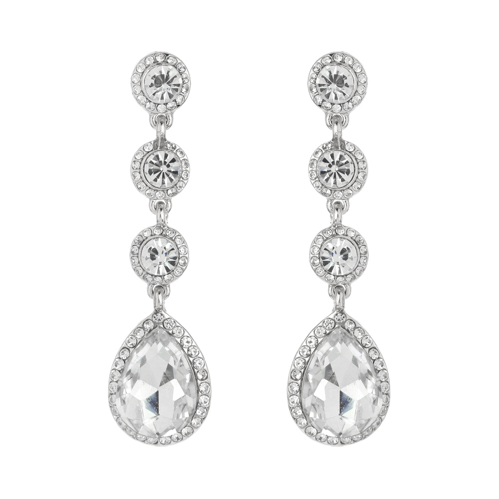 4-TIER CRYSTAL RHINESTONE LONG DROP TEARDROP HALO EARRINGS