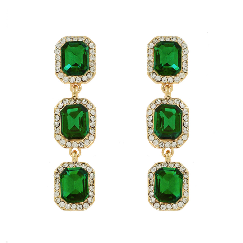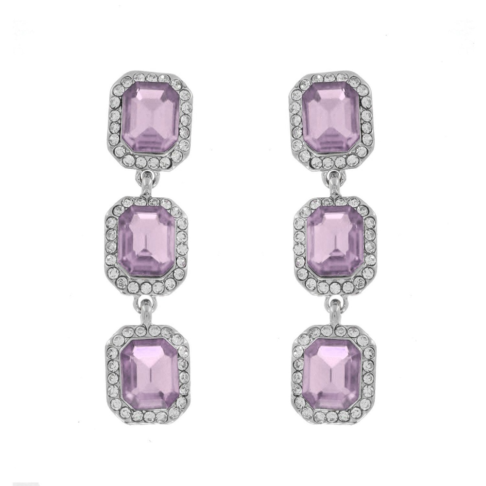 EVENING GLAM CRYSTAL 3-TIER OCTAGONAL HALO EARRINGS