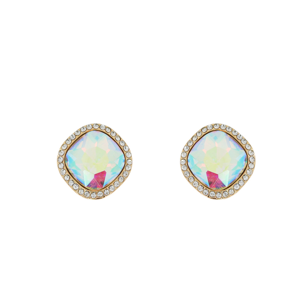 CRYSTAL RHINESTONE DIAMOND SHAPED HALO STUD EARRINGS