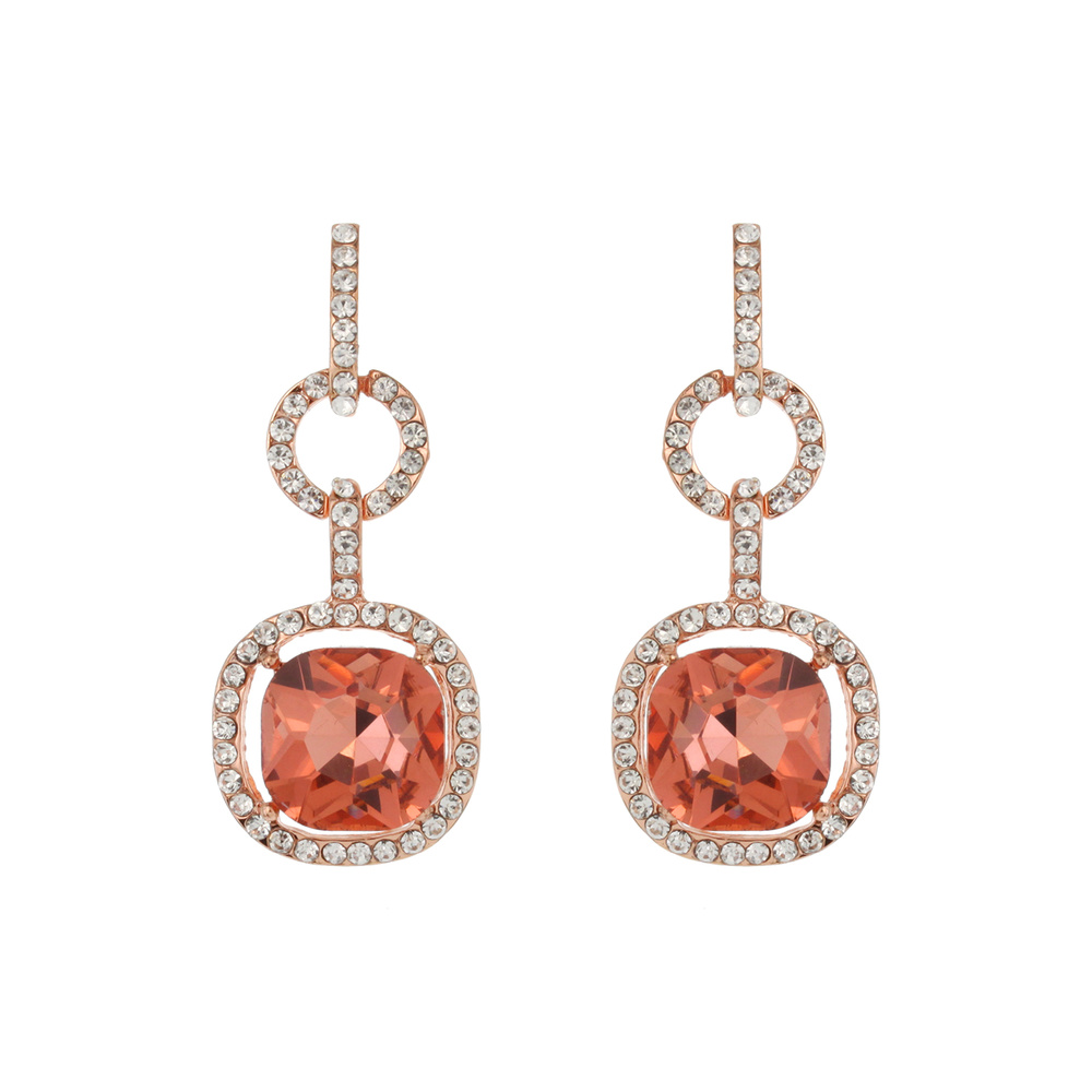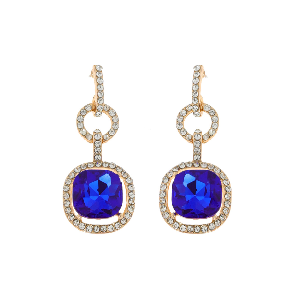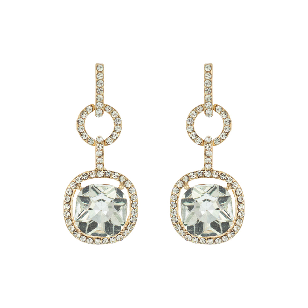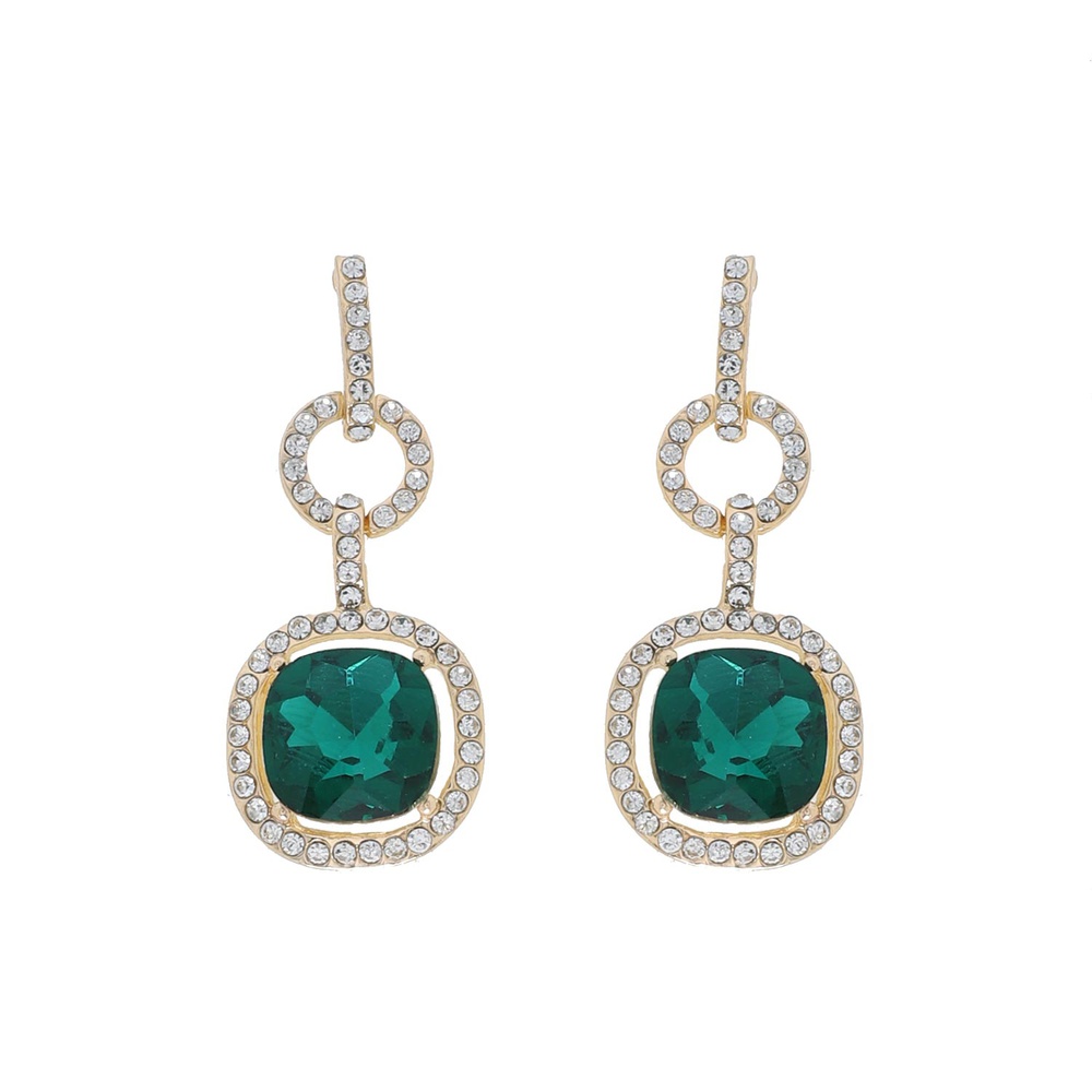 CRYSTAL RHINESTONE SQUARE CUT LINK DROP EARRINGS