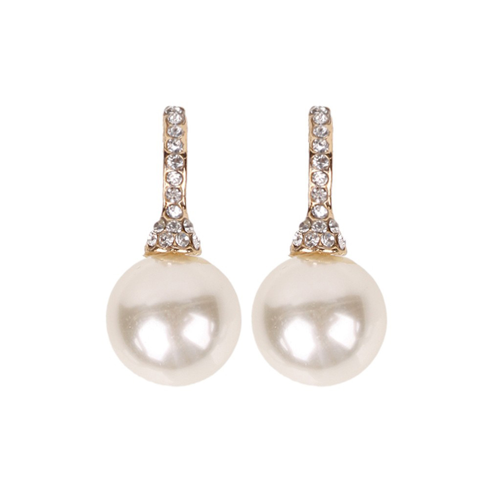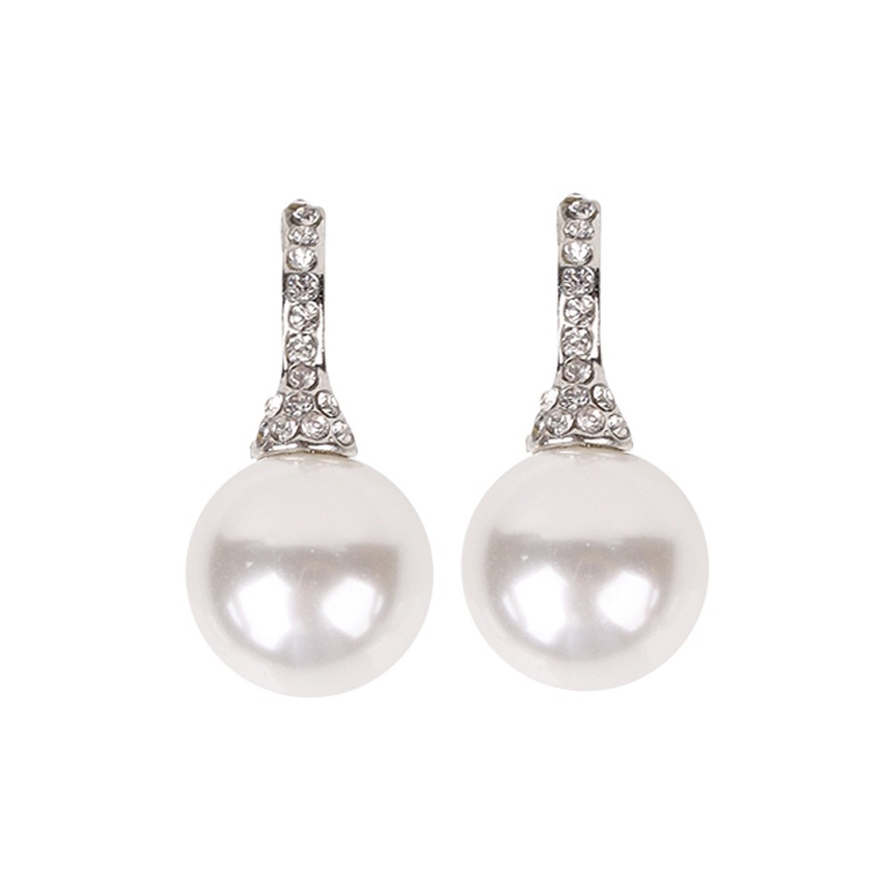 CRYSTAL RHINESTONE PAVE AND SYNTHETIC PEARL DROP EARRINGS
