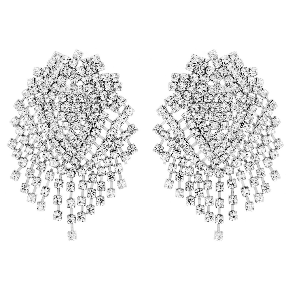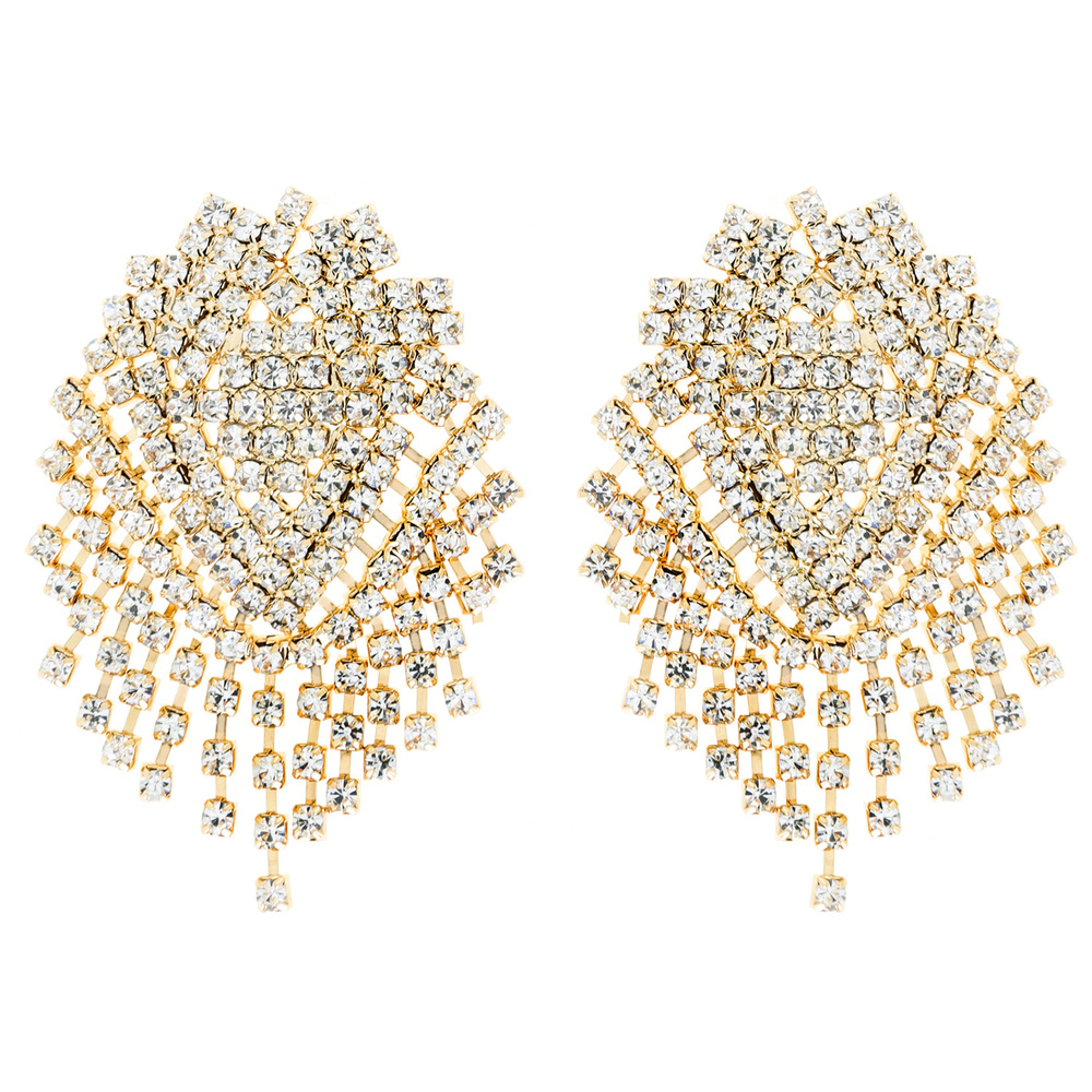 CRYSTAL RHINESTONE FRINGE DROP POST EARRINGS