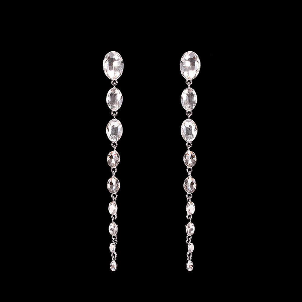 LONG CIRCLE RHINESTONE EARRING W/GEMS