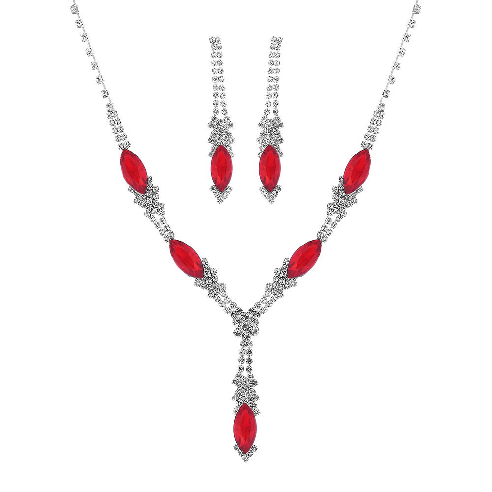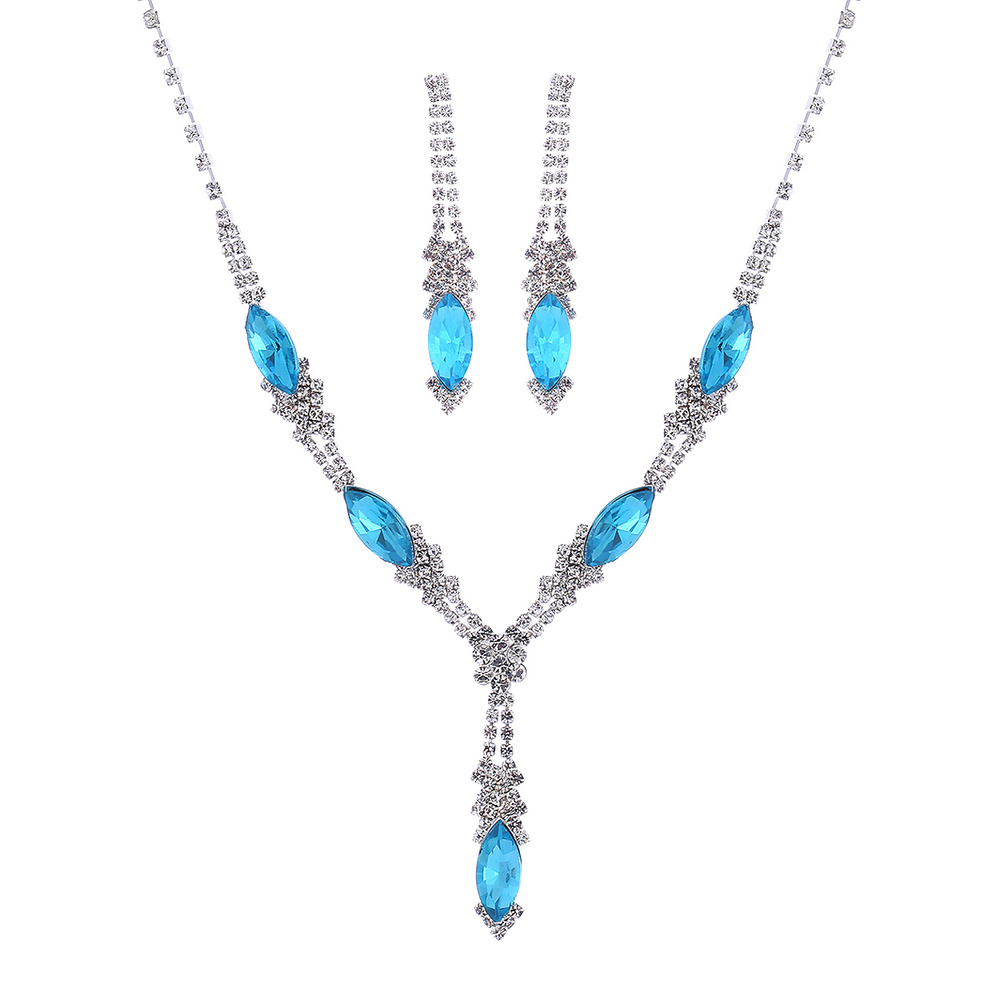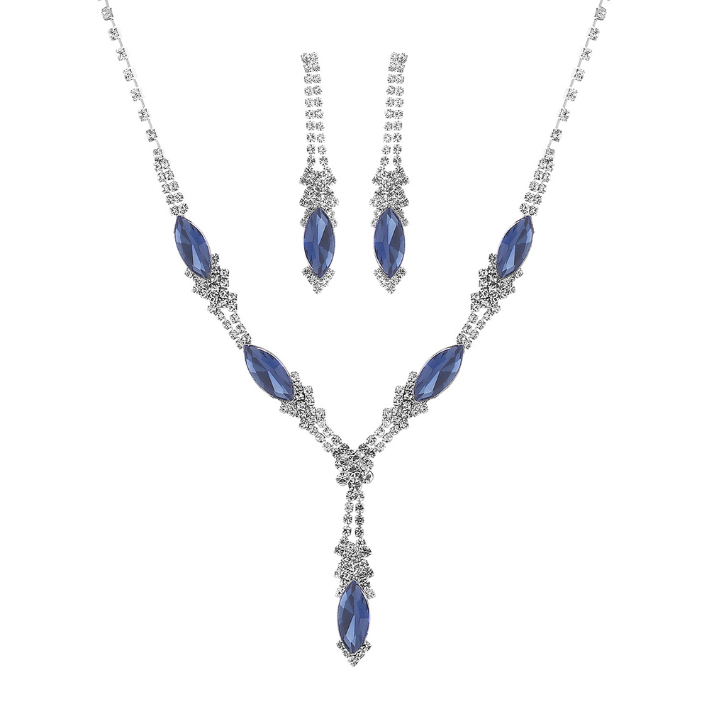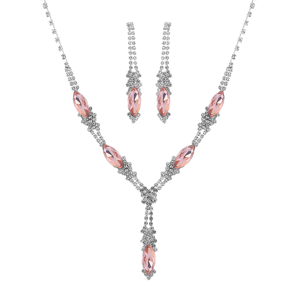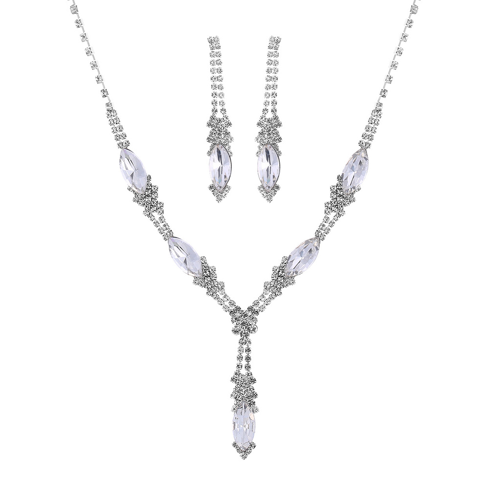 DRESSY RHINESTONE Y-SHAPE NECKLACE EARRING SET