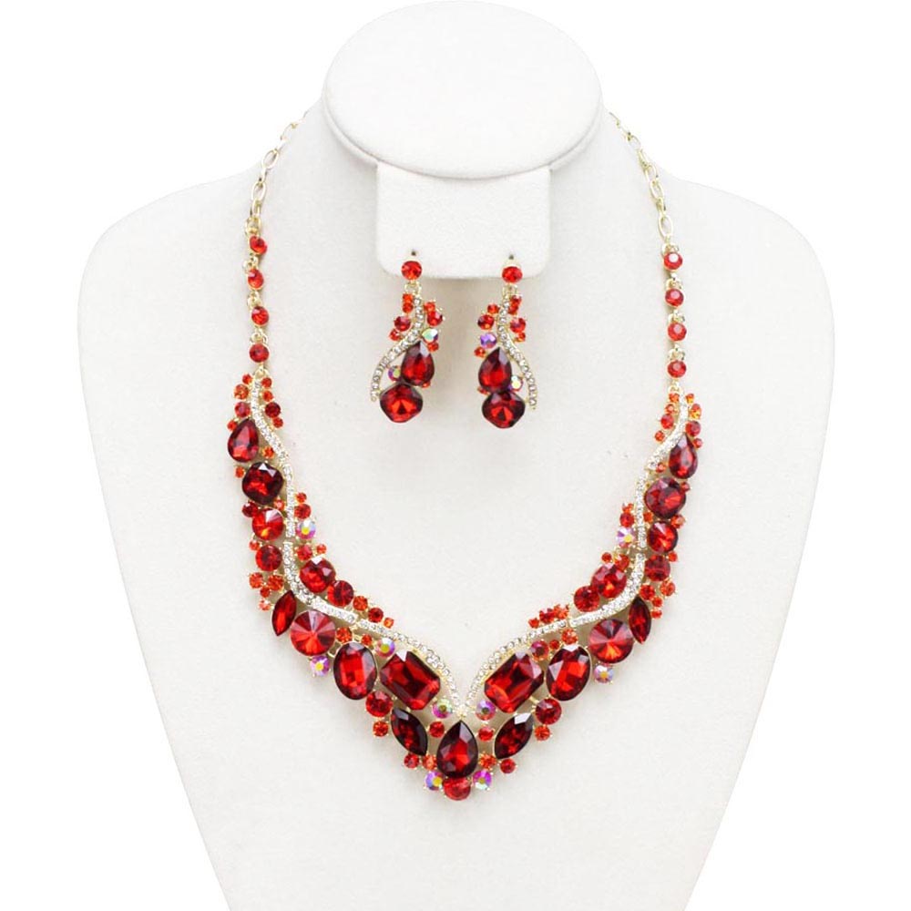 V Shape Stone Cluster Necklace and Earrings Set