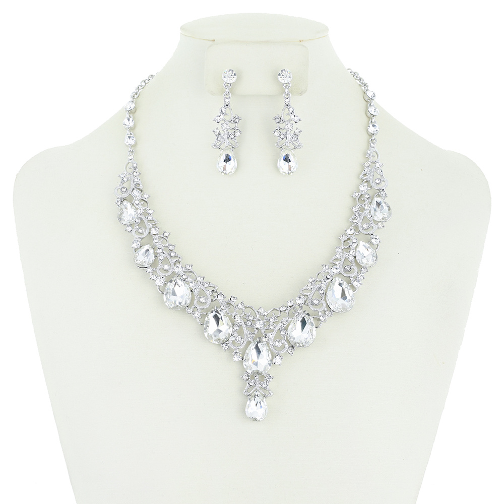 V RHINESTONE NECKLACE AND EARRINGS SET