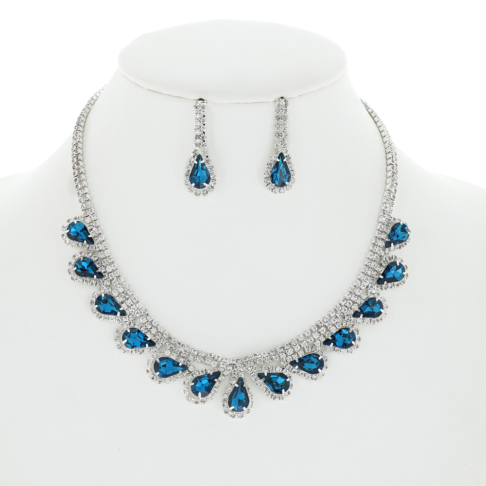 CRYSTAL PAVE TEARDROP CLUSTER PRINCESS NECKLACE EARRINGS SET