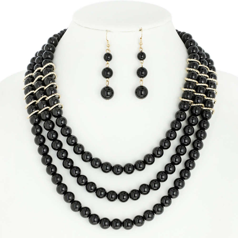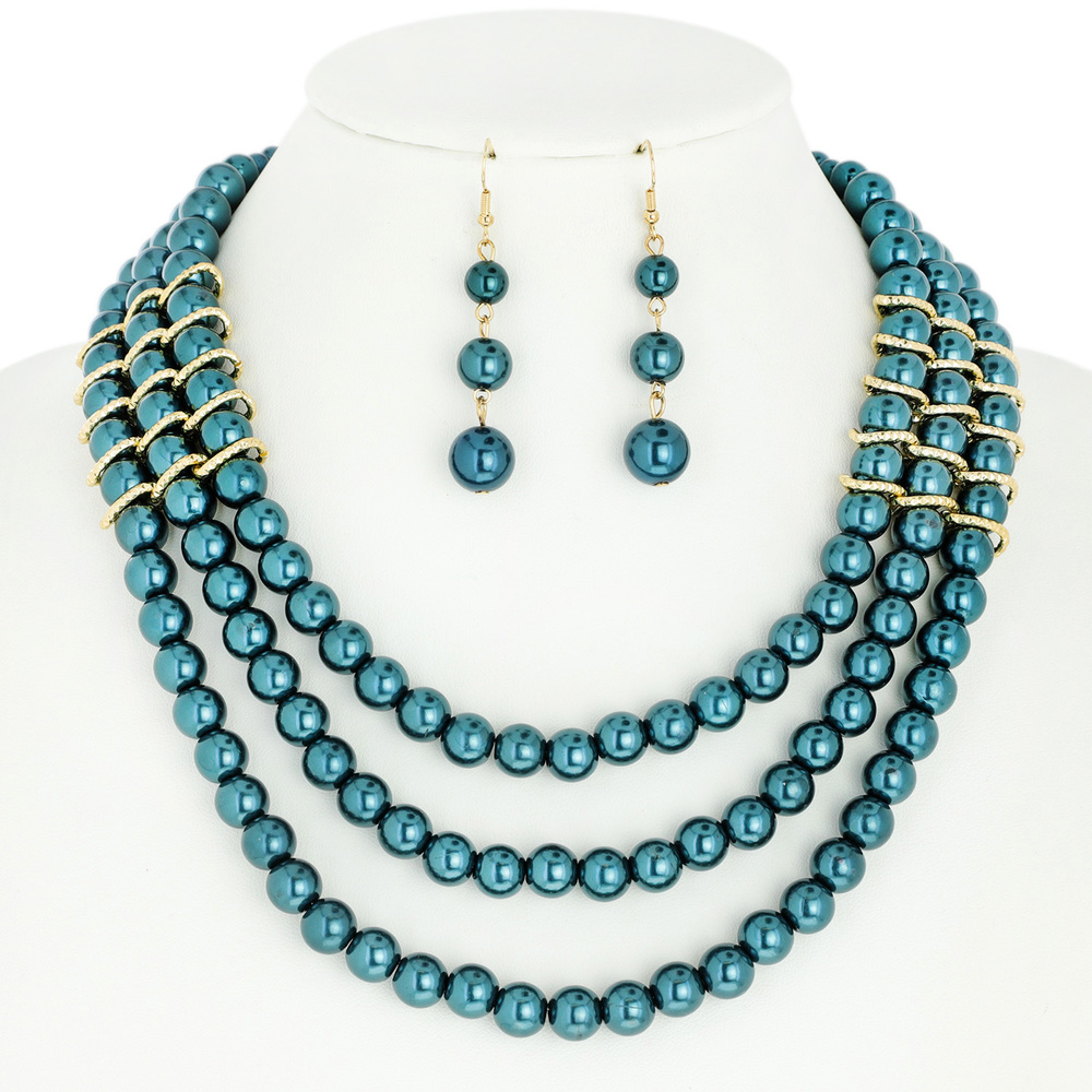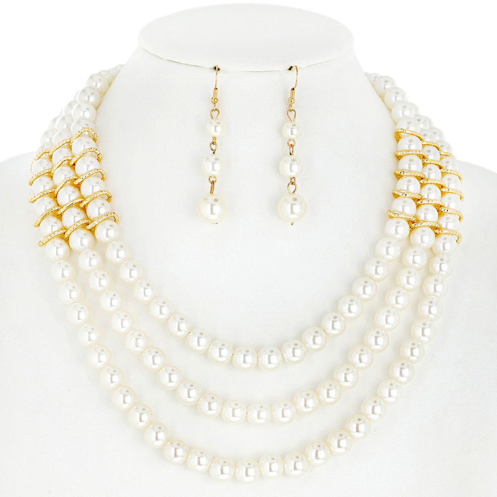TRIPLE STRAND PEARL STATEMENT NECKLACE AND EARRINGS SET