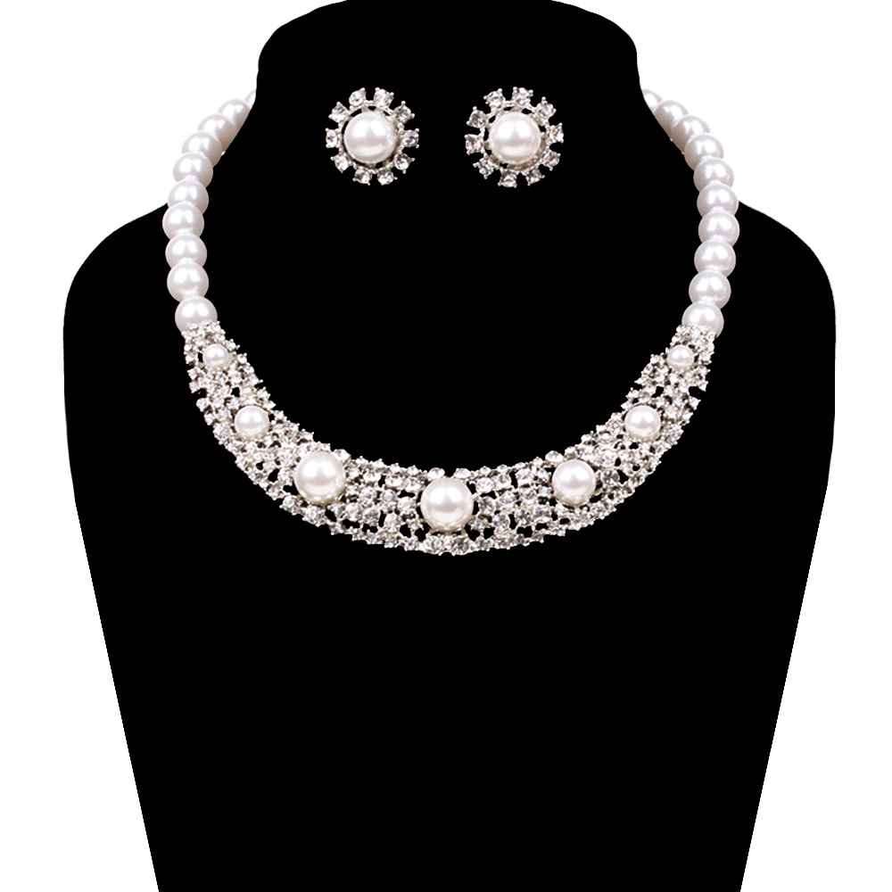 Metal With Pearls Necklace And Earrings Set Npq2Rwh