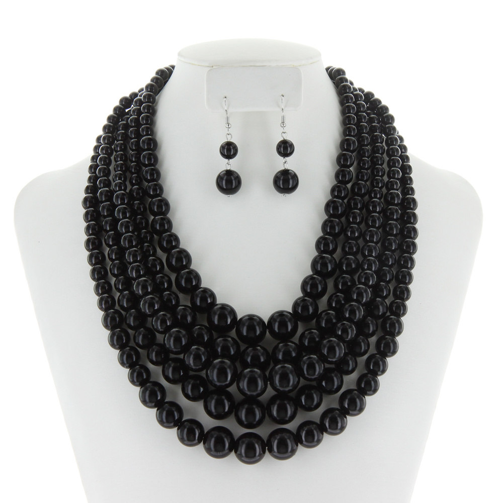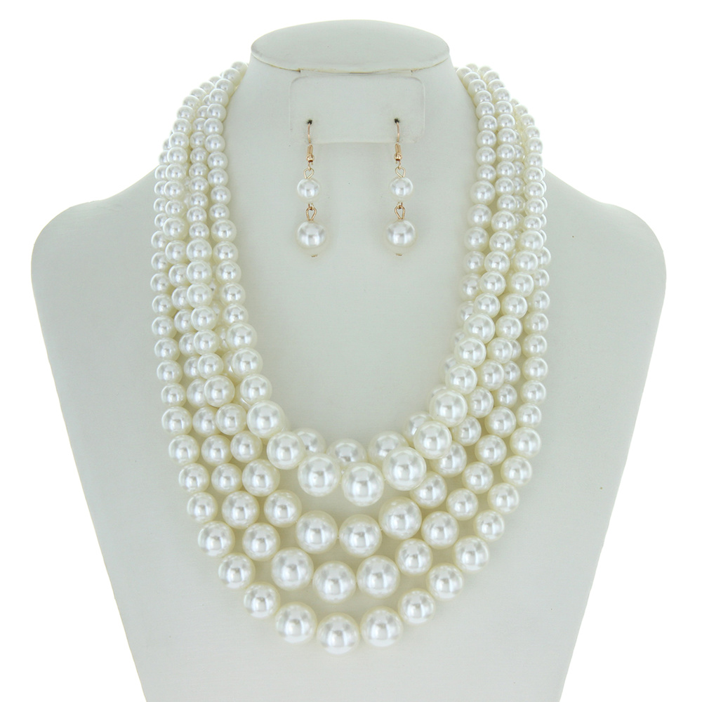 5 Layer Large Pearl Strands Extra Chunky Necklace and Earrings Set