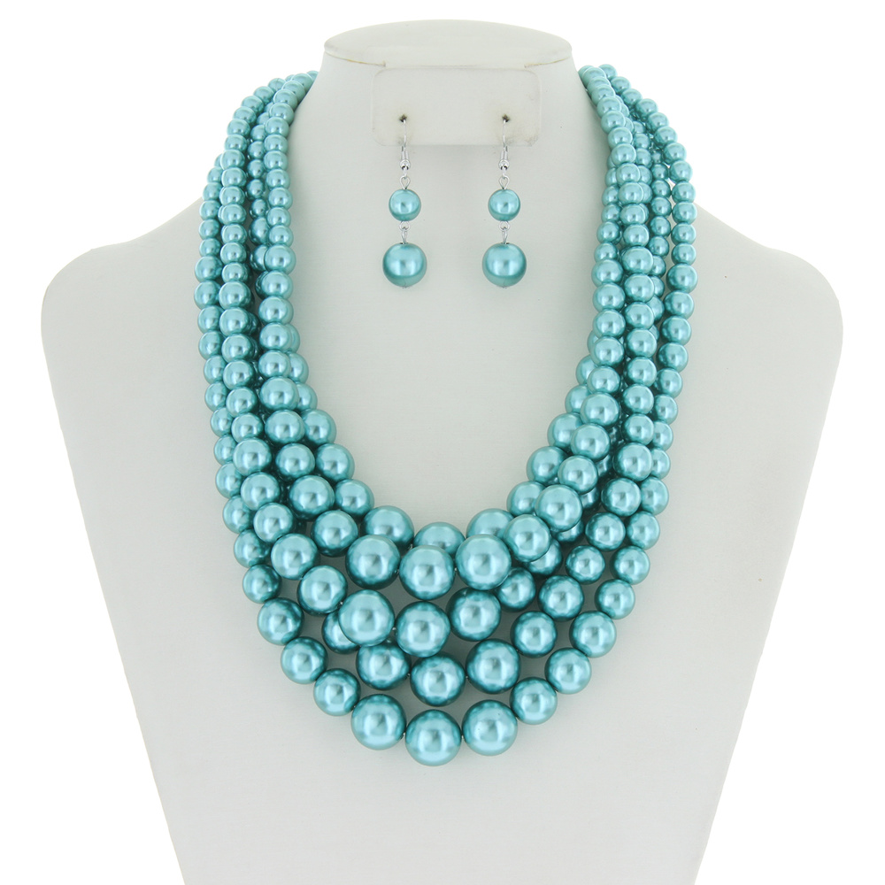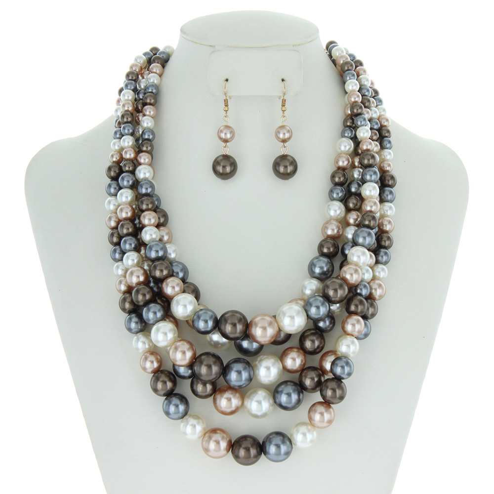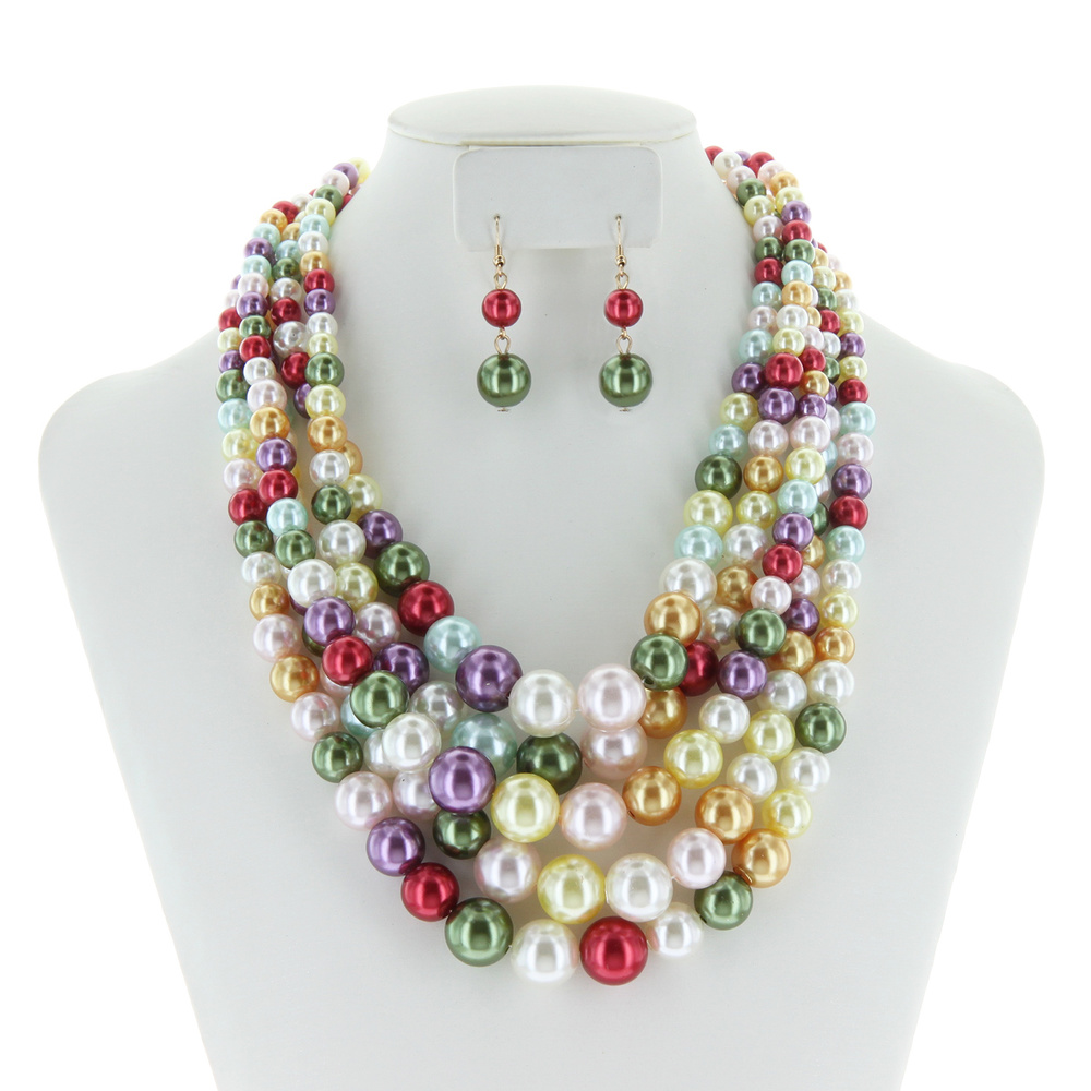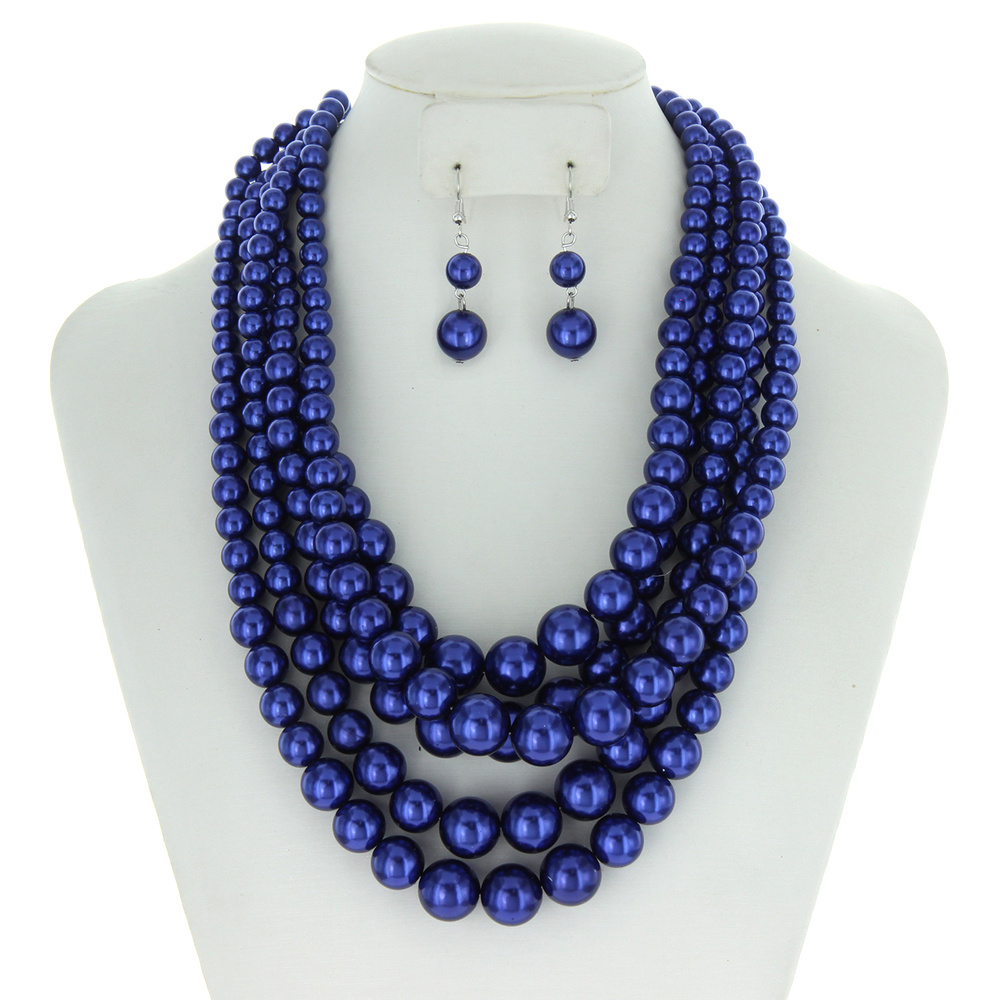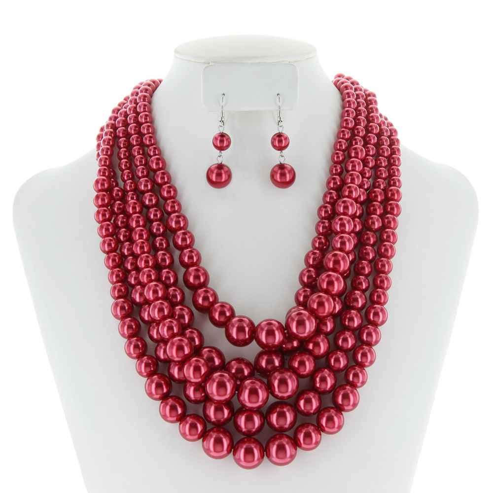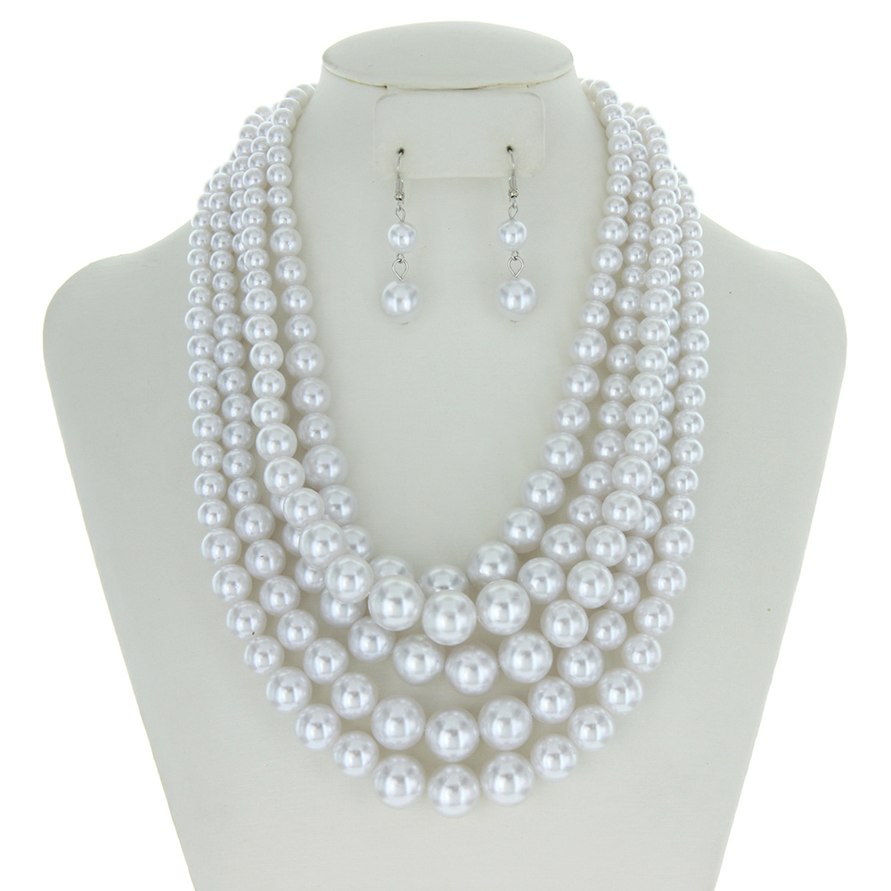 5 Layer Large Pearl Strands Extra Chunky Necklace And Earrings Set