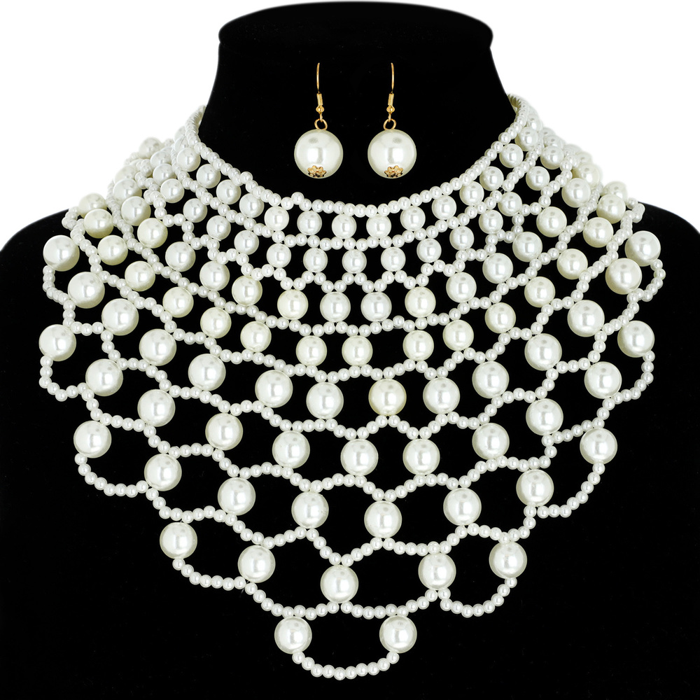 PEARL ARMOR BIB STATEMENT COLLAR CHOKER NECKLACE AND EARRINGS SET