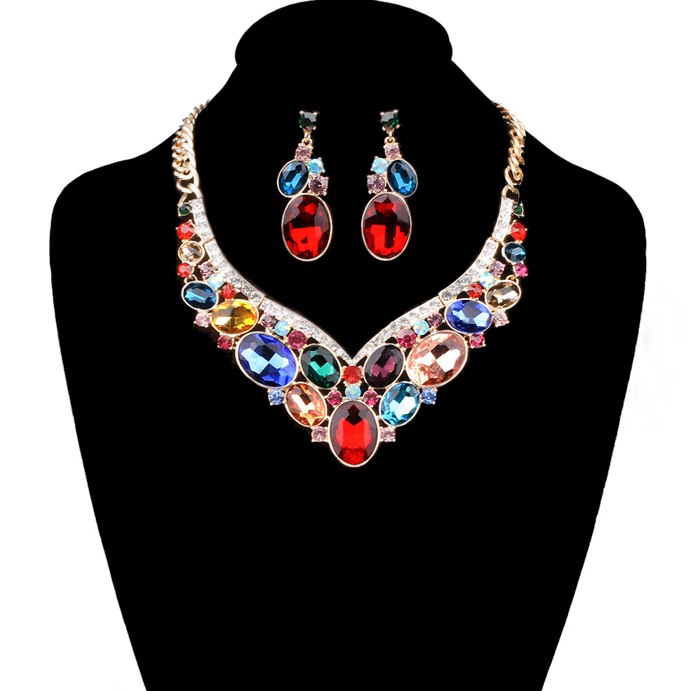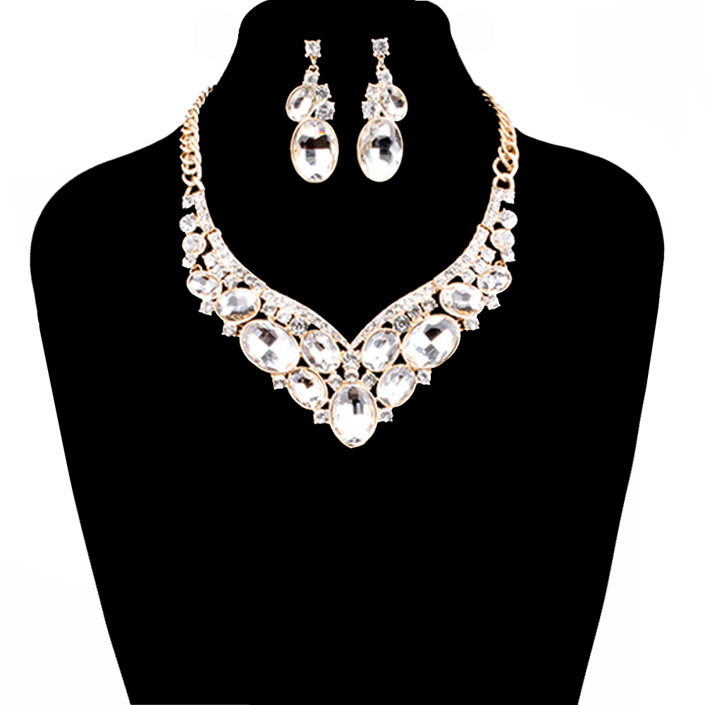 Oval Gem V Cluster Necklace And Earrings Set Nbq6Rcl