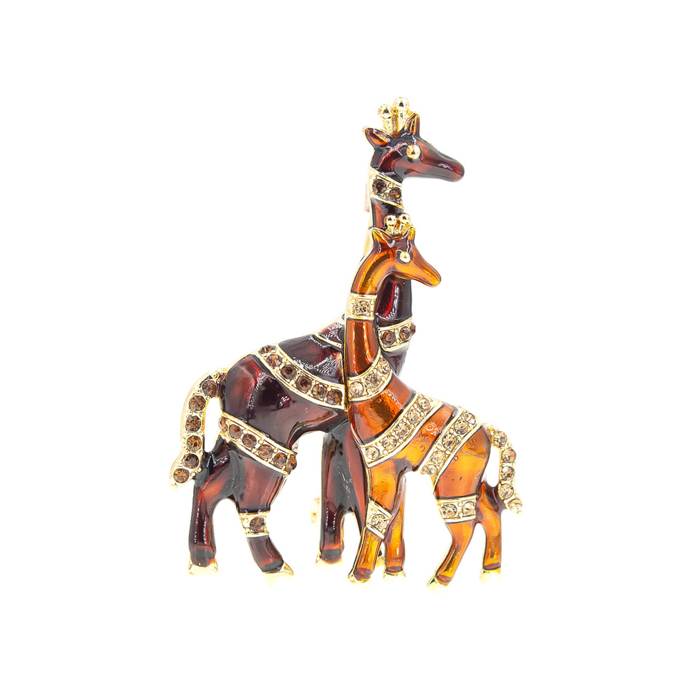 Rhinestone Pave Enamel Giraffes Brooch Pin