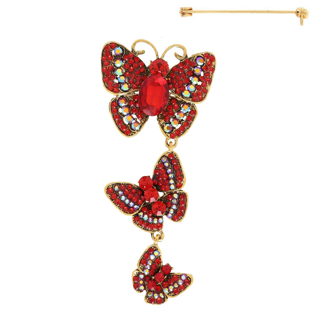 3-TIER VINTAGE CRYSTAL GEMSTONE JEWELED BUTTERFLY BROOCH PIN IN GOLD TONE METAL
