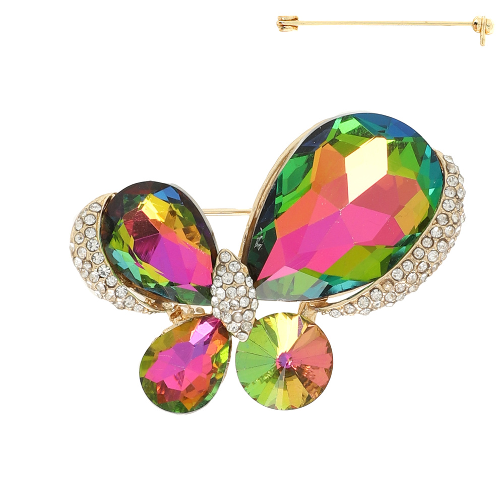 CRYSTAL RHINESTONE PAVE IRREGULAR BUTTERFLY BROOCH PIN
