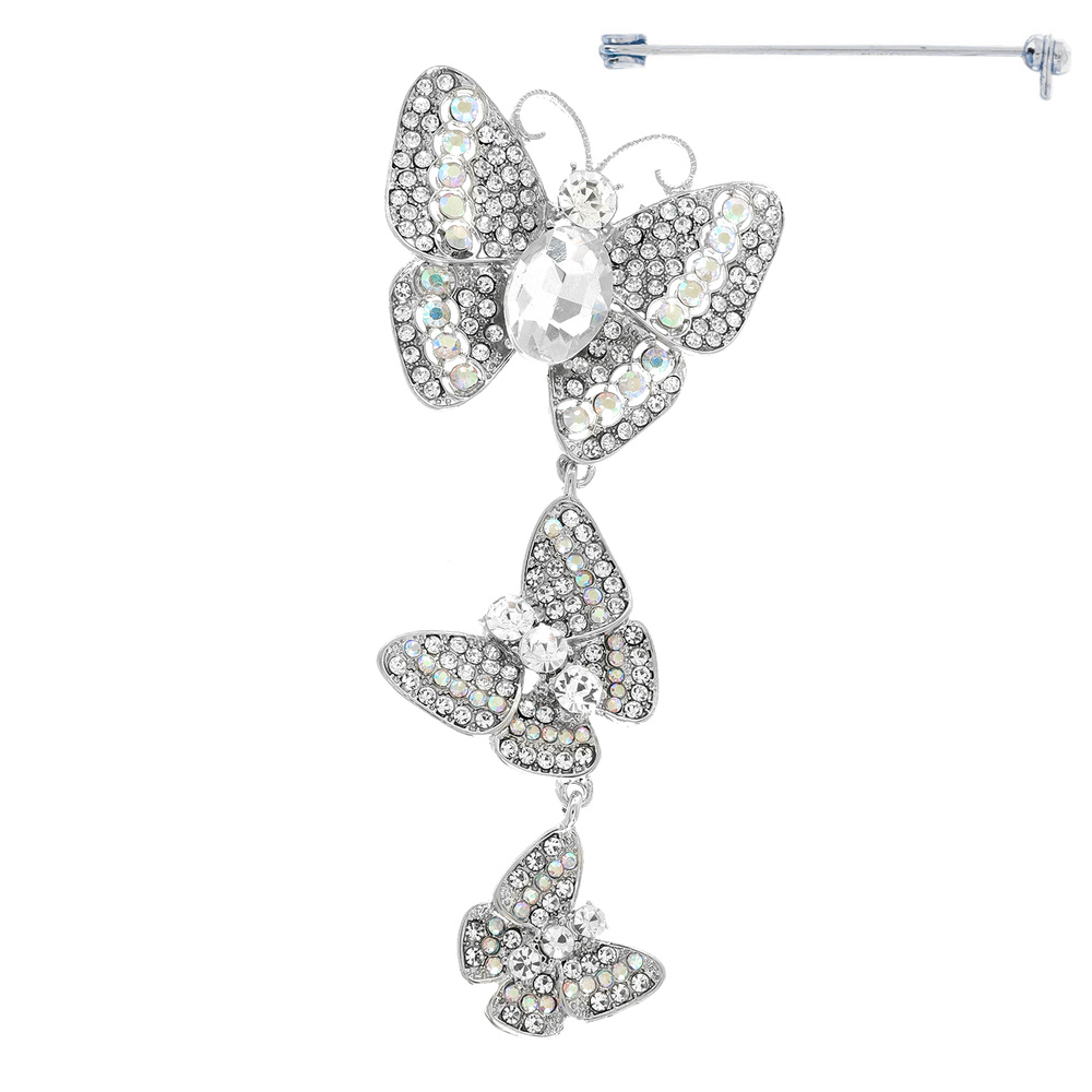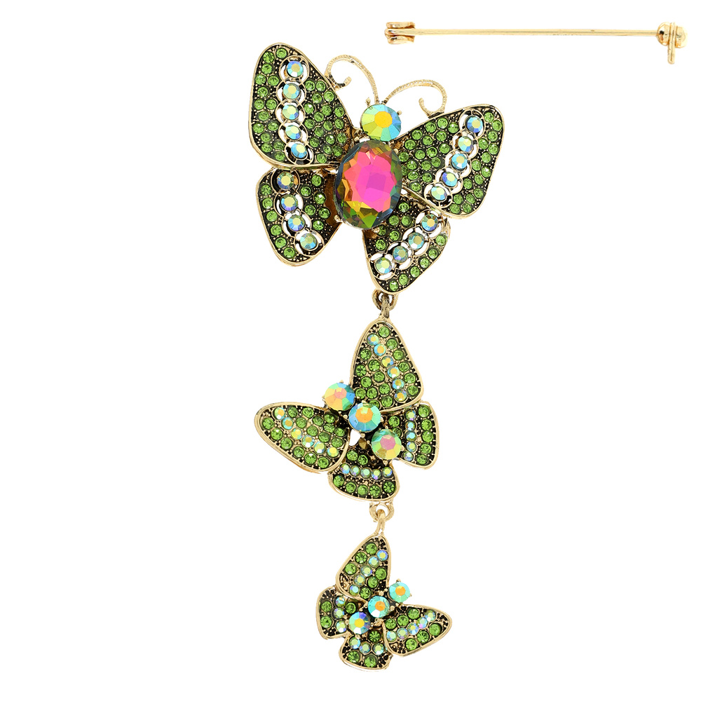 Jeweled Cascading Butterfly Brooch Pin