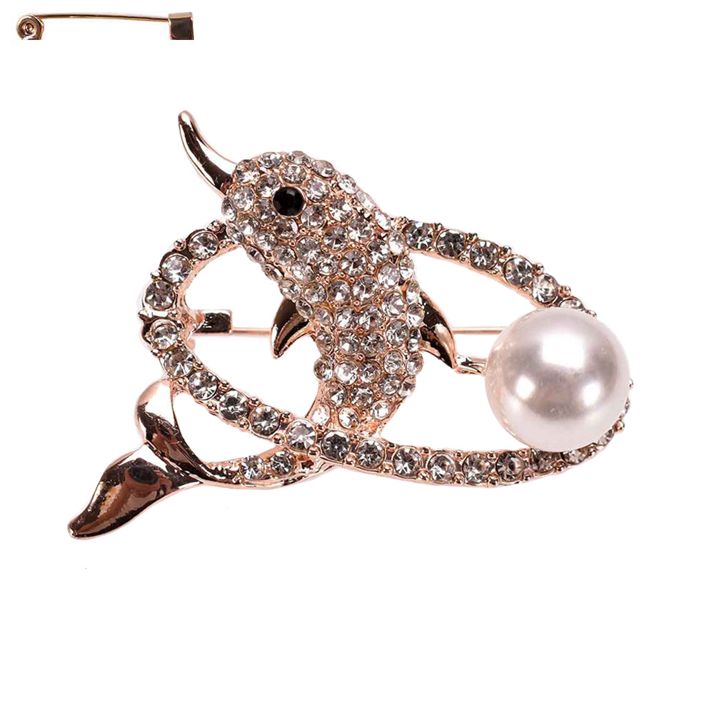 WHALE METAL CASTING STONE BROOCH